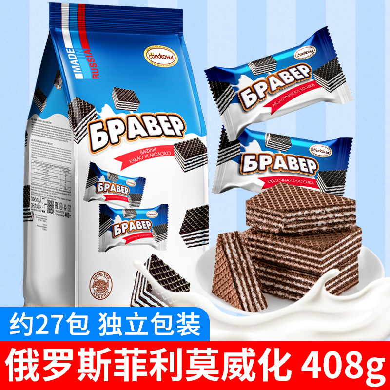 俄罗斯威化饼干原装进口阿孔特牌巧克力奶酪味休零食品酸奶味358g