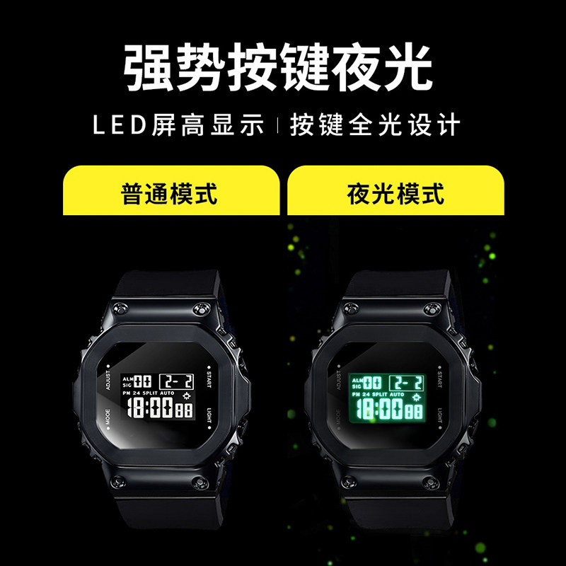 小方块手表男款儿童学生青少年初高中潮流运动机械防水电子表女