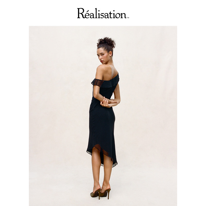 RealisationPar 连衣裙黑色斜肩性感复古真丝中长裙 The Carrie
