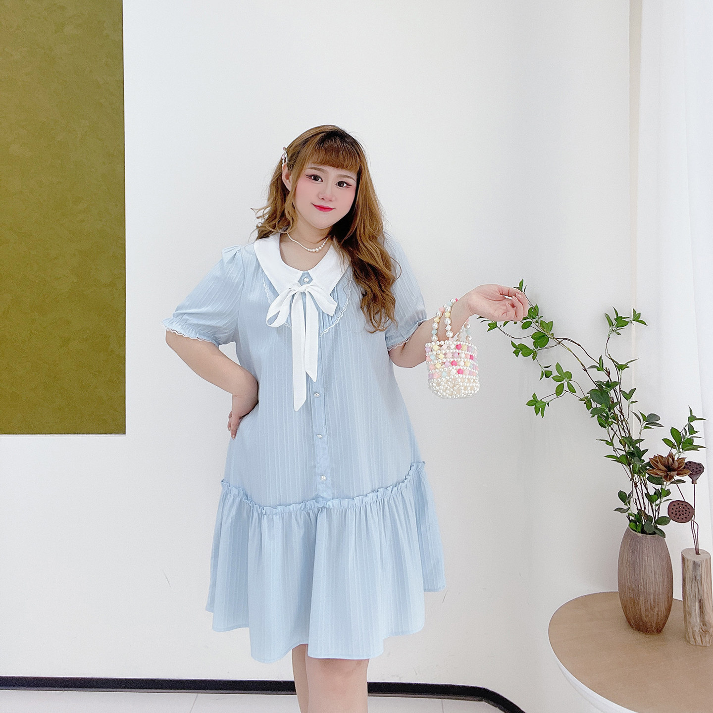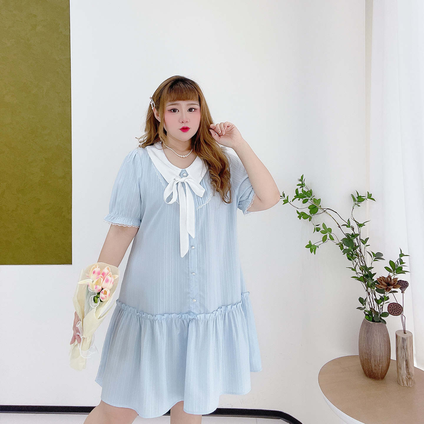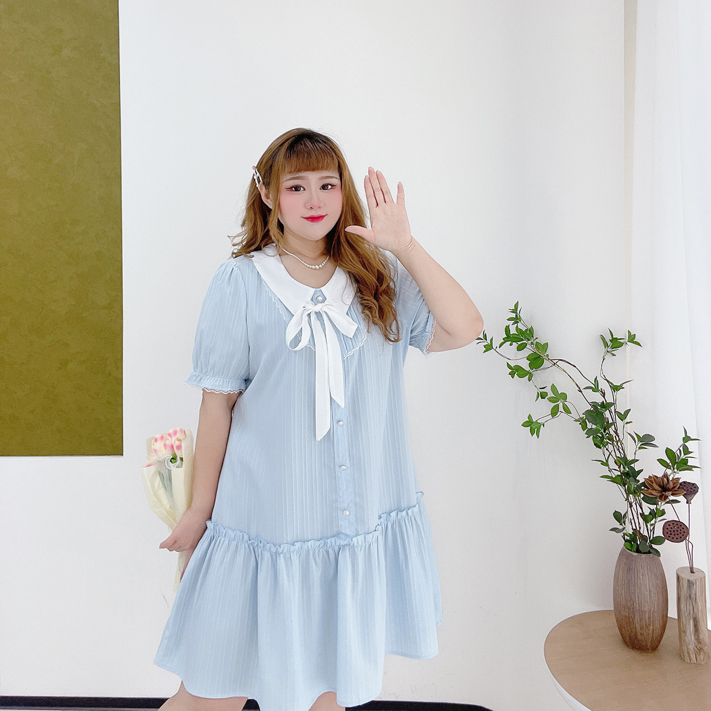 大码甜美韩系少女感娃娃领短裙