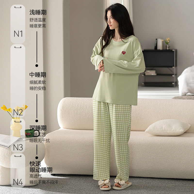 猫人纯棉女士睡衣女春秋季2026新款长袖圆领可外穿全棉家居服套装
