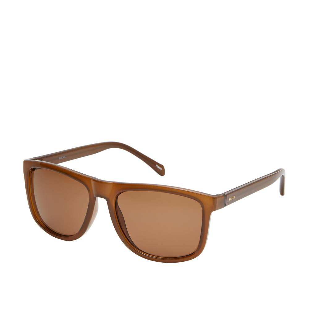 自营Fossil 男士方形太阳镜 - 棕色 美国奥莱直发