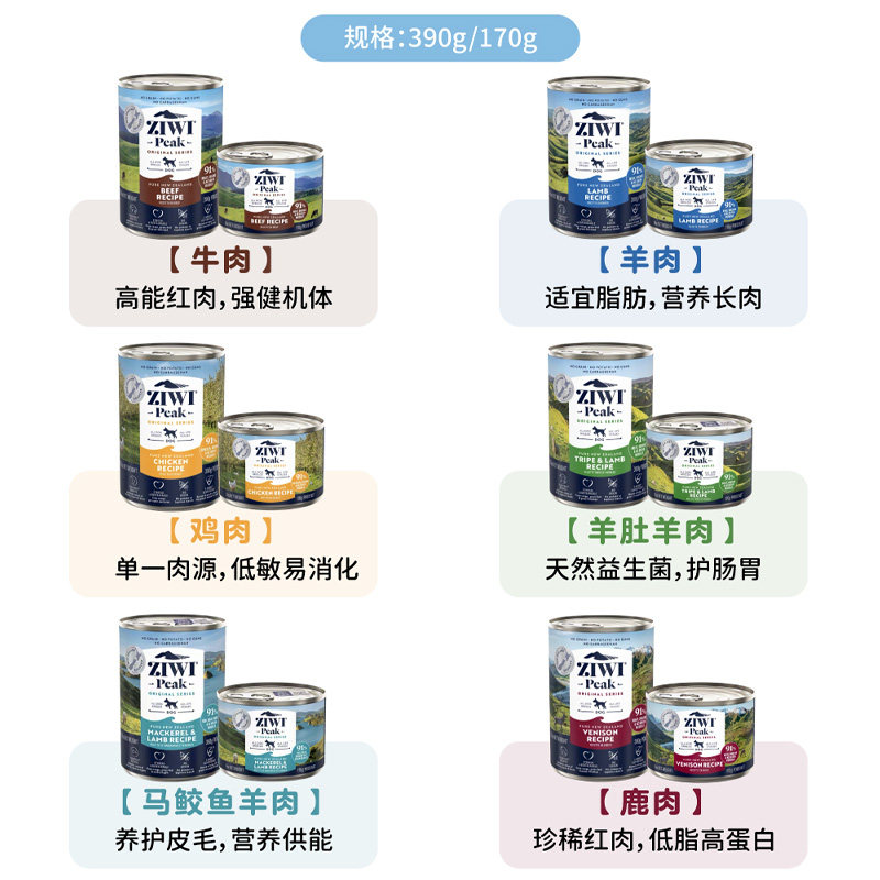 YUMMY巅峰狗主食罐头 进口ziwi宠物鹿肉马鲛鱼鸡牛肉湿粮狗粮零食