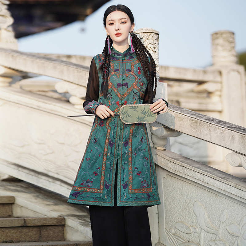民族风新中式重工刺绣中长款马夹