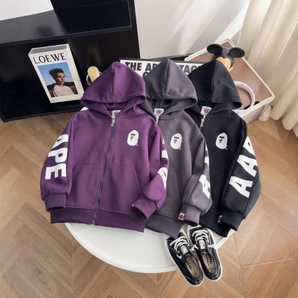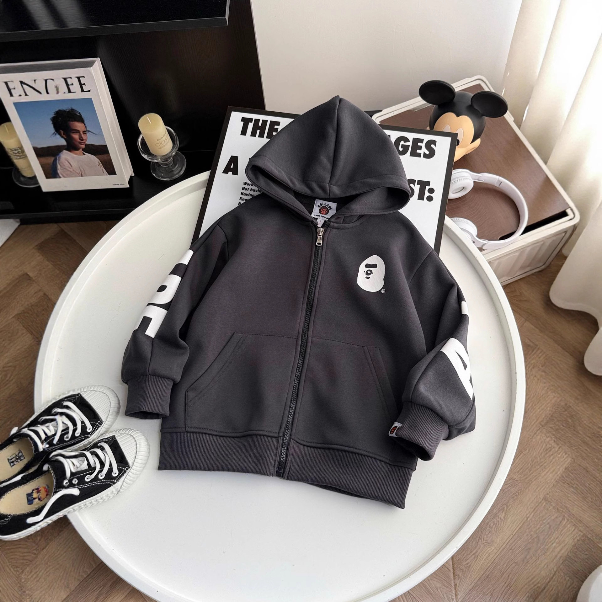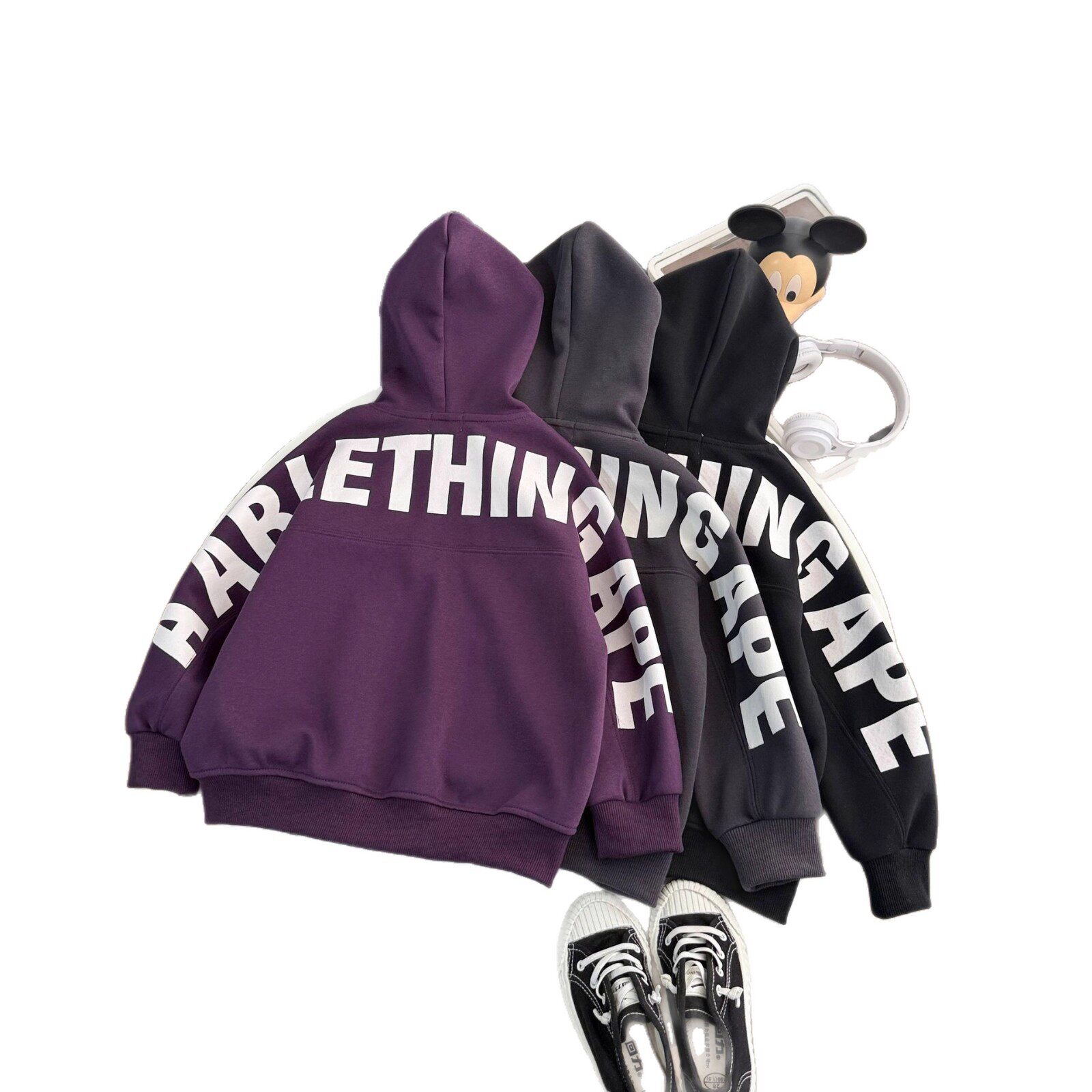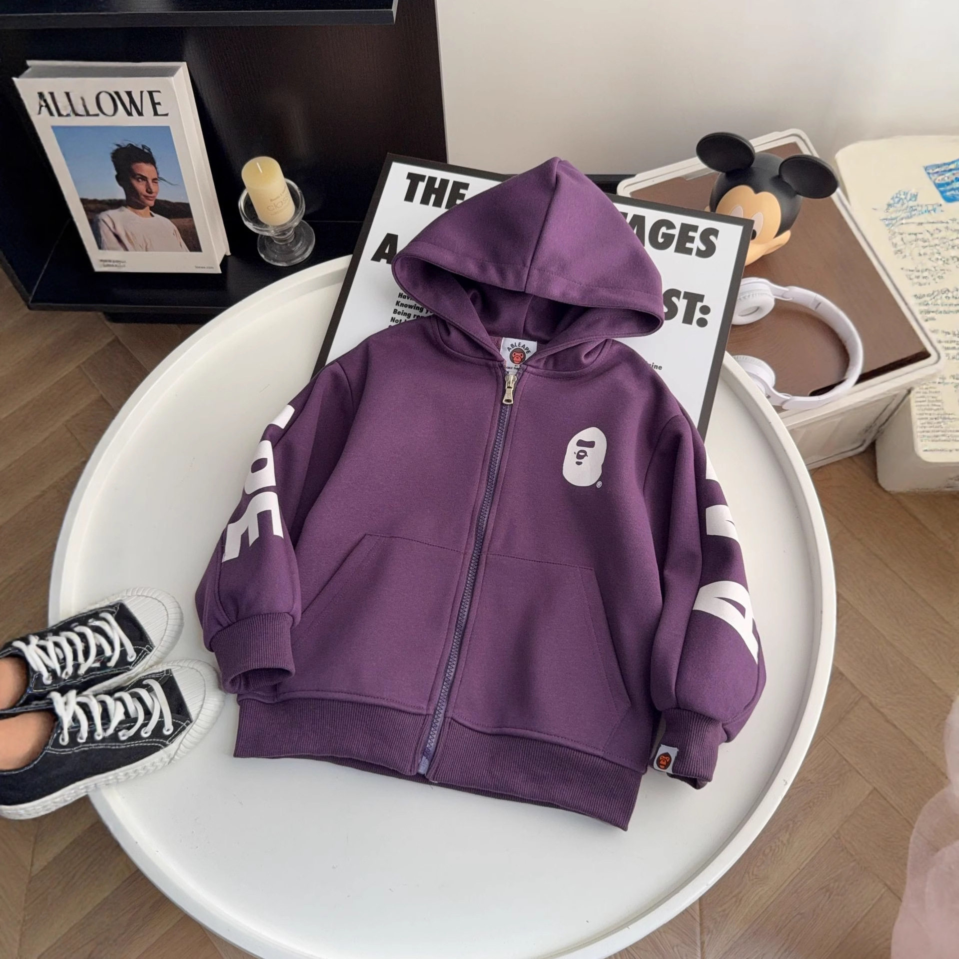 童装休闲潮牌25秋季新款儿童拉链衫连帽外套男女童印花韩版女宝