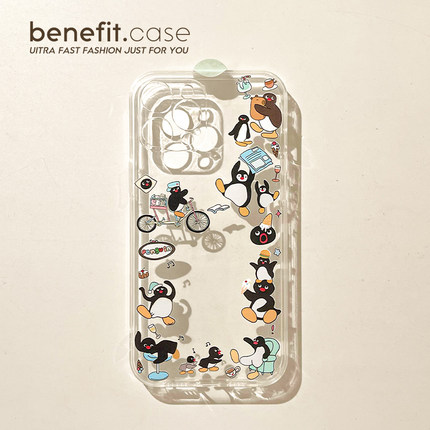 benefit卡通可爱小企鹅17pro16适用iphone15promax苹果13手机壳14promax新款12套11简约xsmax透明xr硅胶8p7p