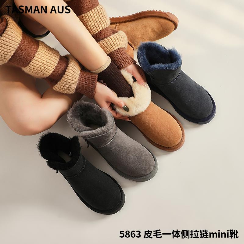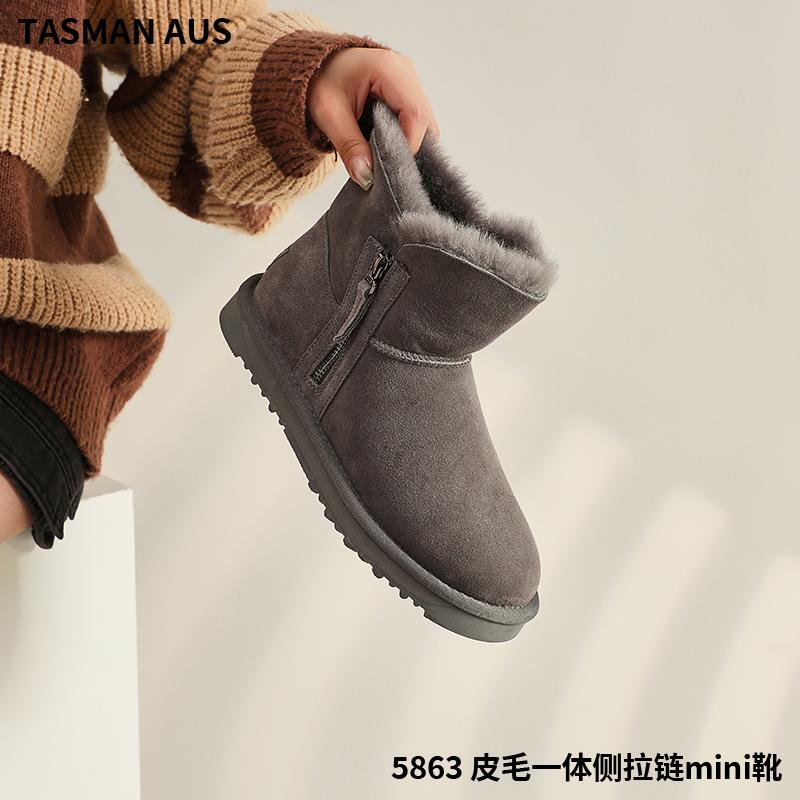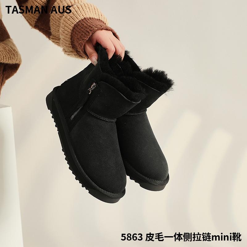 澳洲TASMAN AUS男女同款保暖雪地靴羊毛皮毛一体侧拉链迷你雪地靴
