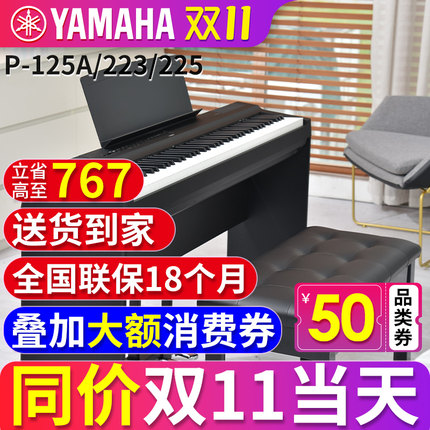 雅马哈电钢琴88键重锤P223数码电子钢琴家用初学者便携式P225/125