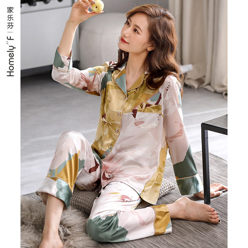 睡衣女士春夏季丝绸冰丝长袖家居服春秋款秋季秋装薄款套装