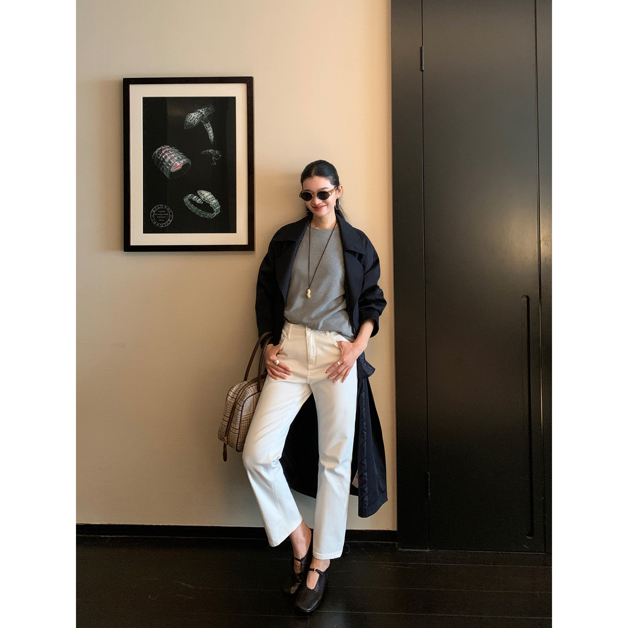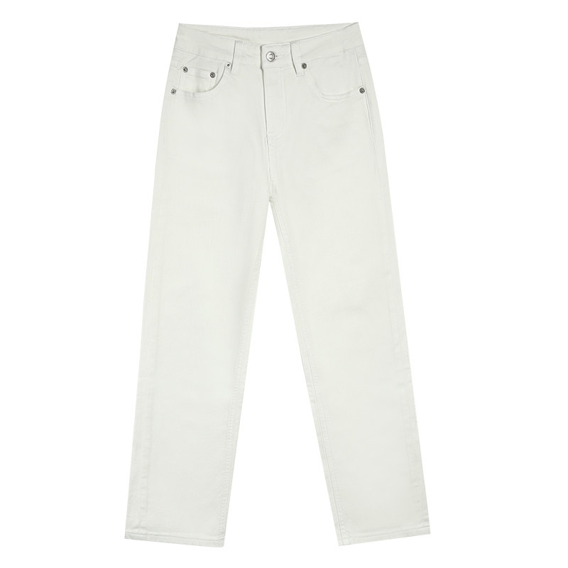 pusumede白色牛仔裤女秋冬气质宽松直筒裤九分烟管裤百搭高腰裤子