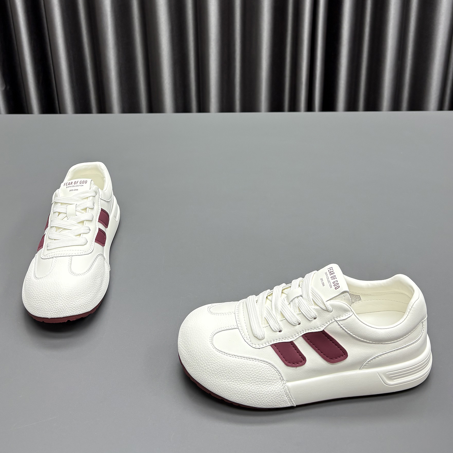 真皮小白鞋女2025秋季新款圆头厚底拼色时尚百搭牛皮休闲德训板鞋