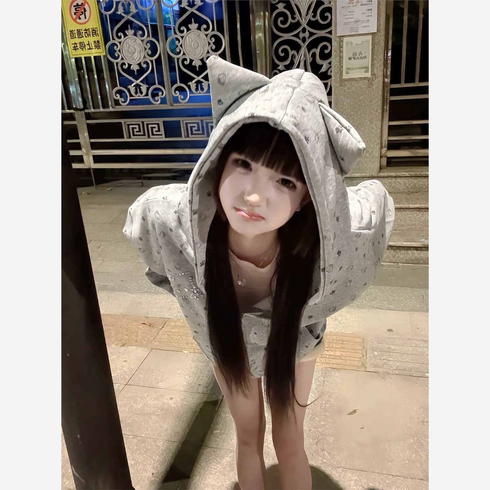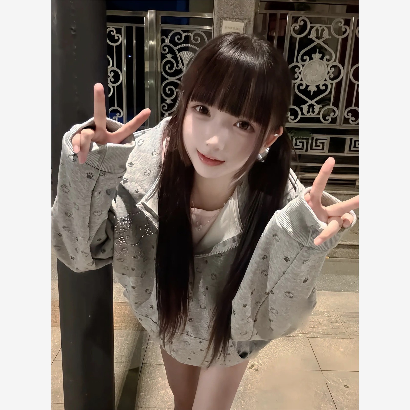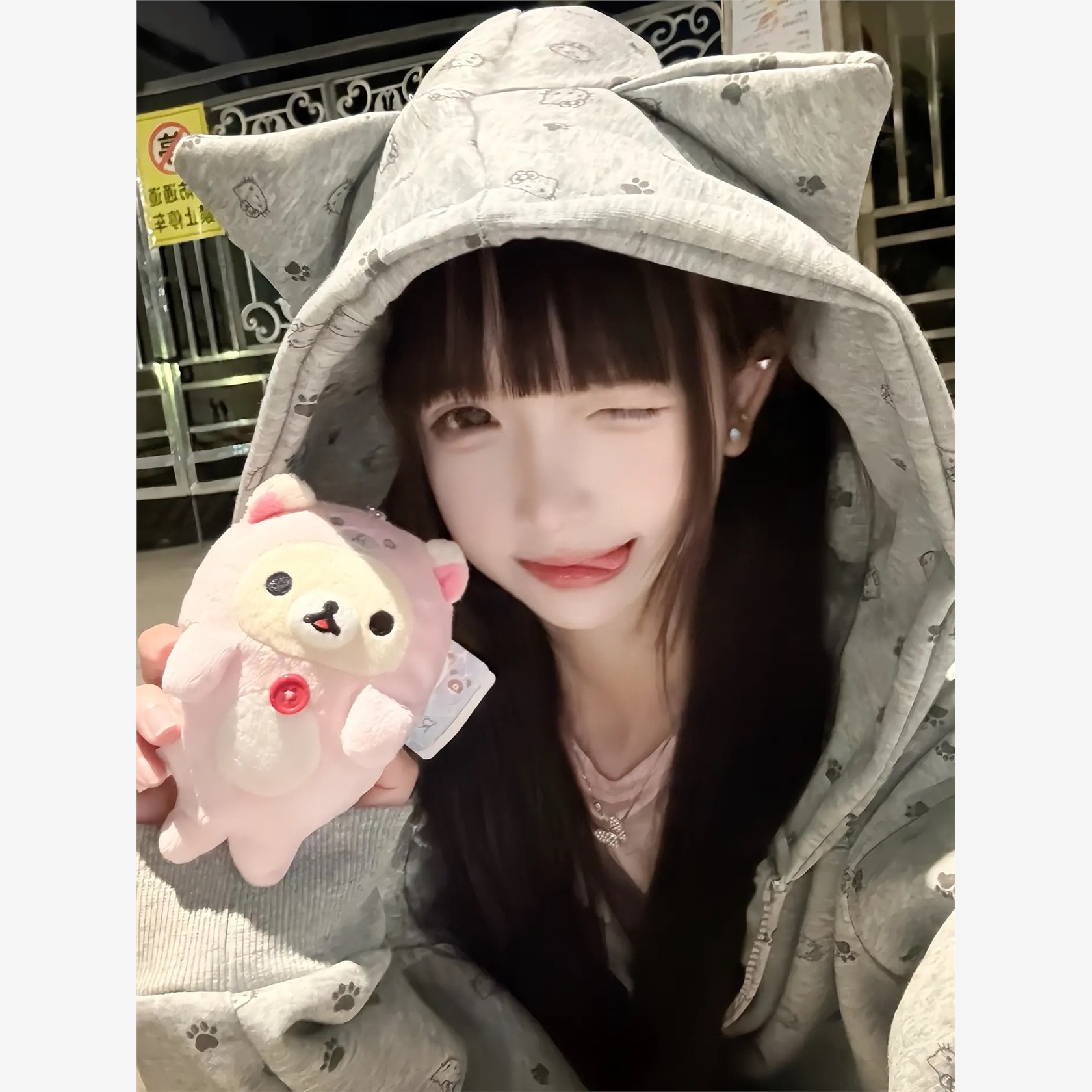 韩系甜美学院风连帽开衫卫衣女秋冬新款宽松慵懒百搭上衣加厚外套