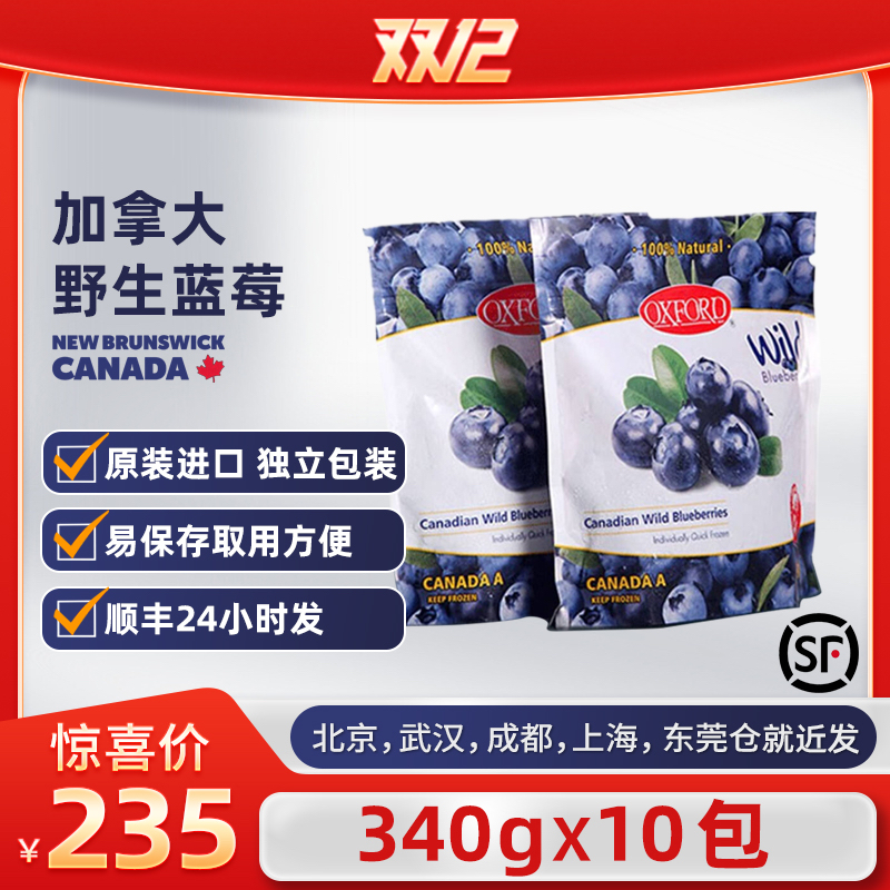 加拿大牛津牌高端冷冻野生蓝莓新鲜27.2斤一整箱冷链包邮安疗同款