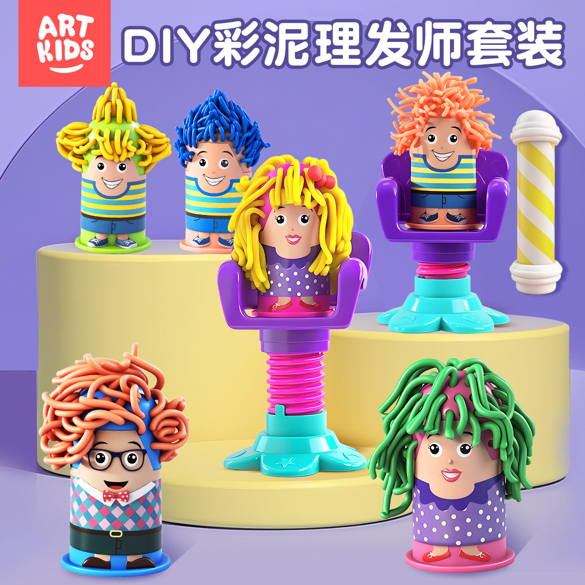 艺启乐彩泥12色DIY理发师儿童3D橡皮泥太空黏土女孩超轻粘土玩具