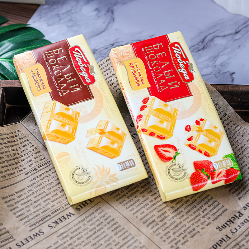 俄罗斯进口巧克力胜利牛奶白巧克力夹心纯可可脂食品网红零食100g