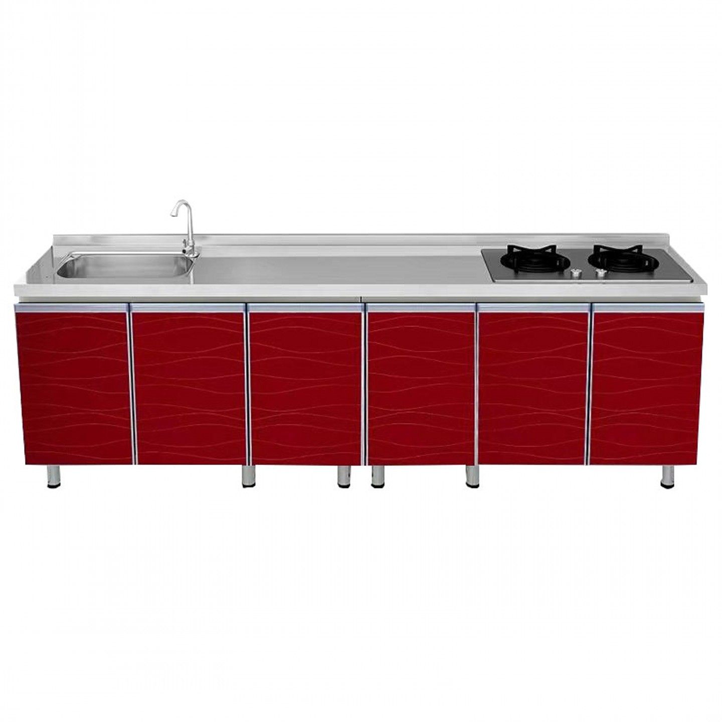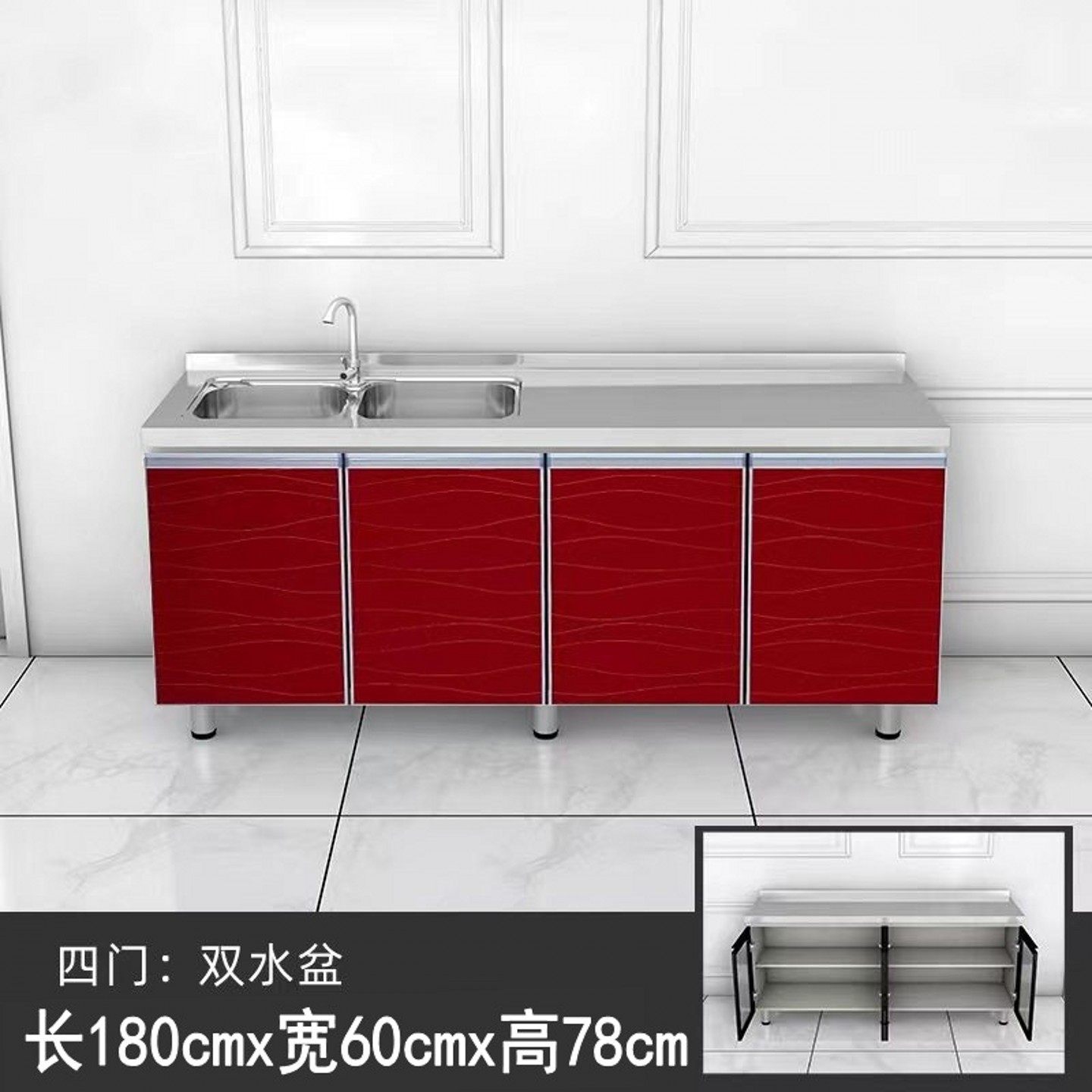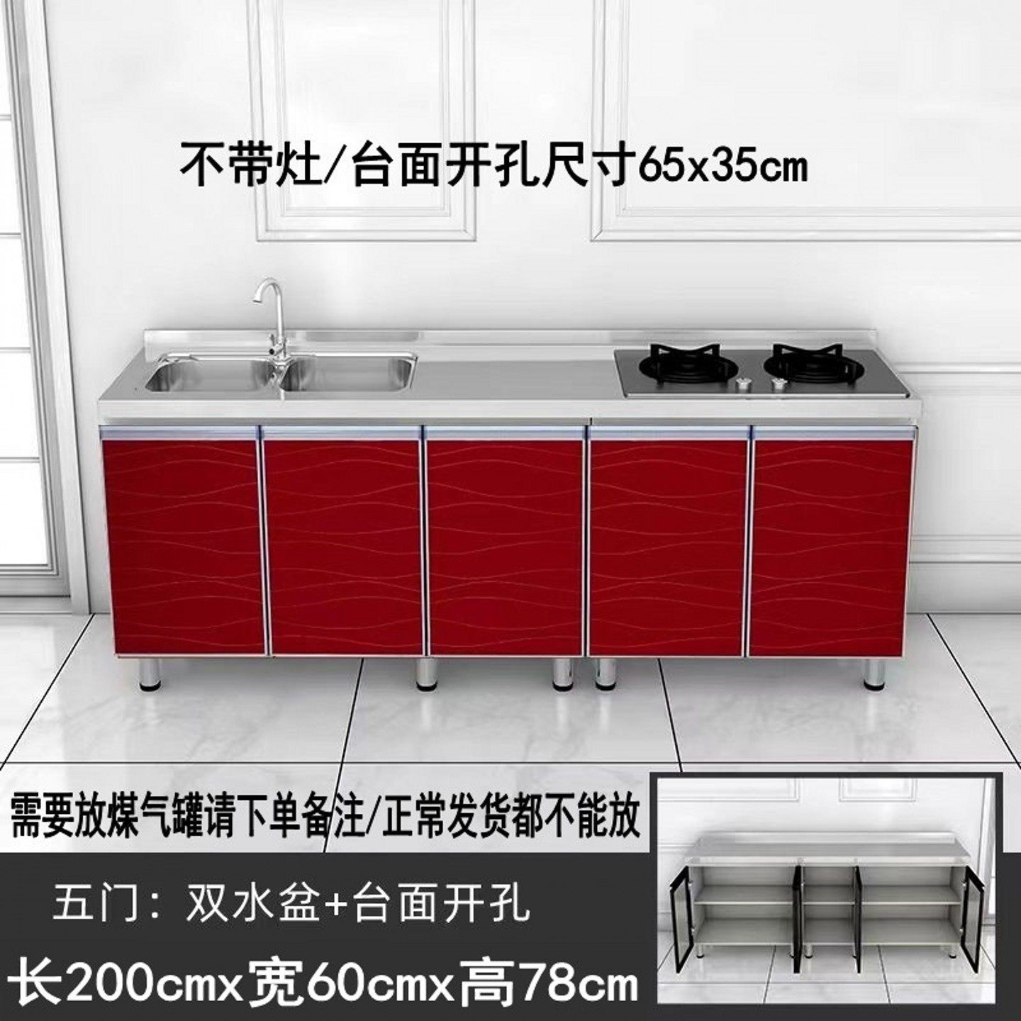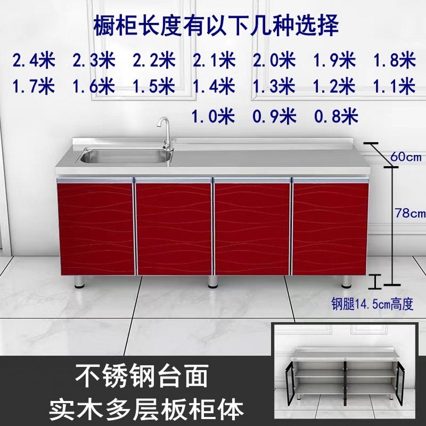 加宽厨房橱柜不锈钢台面实木柜体做饭租房用带水盆碗灶铝合金门框
