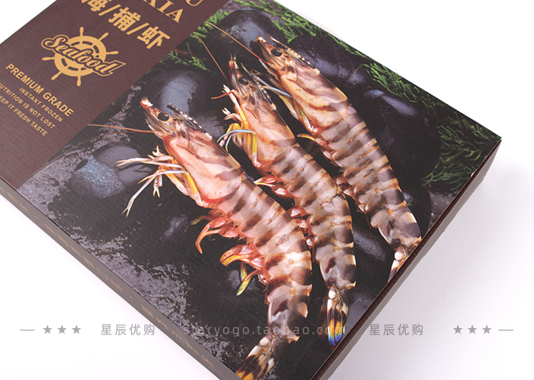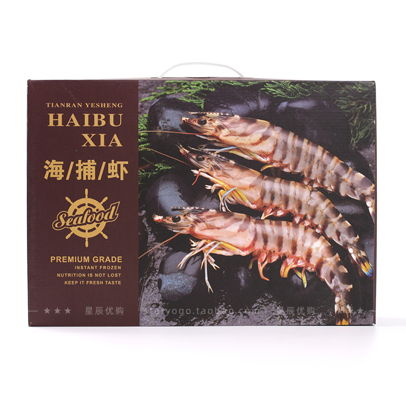 海捕虾手提包装飞机盒海虾礼品盒通用冷冻大对虾纸盒海虾海鲜盒