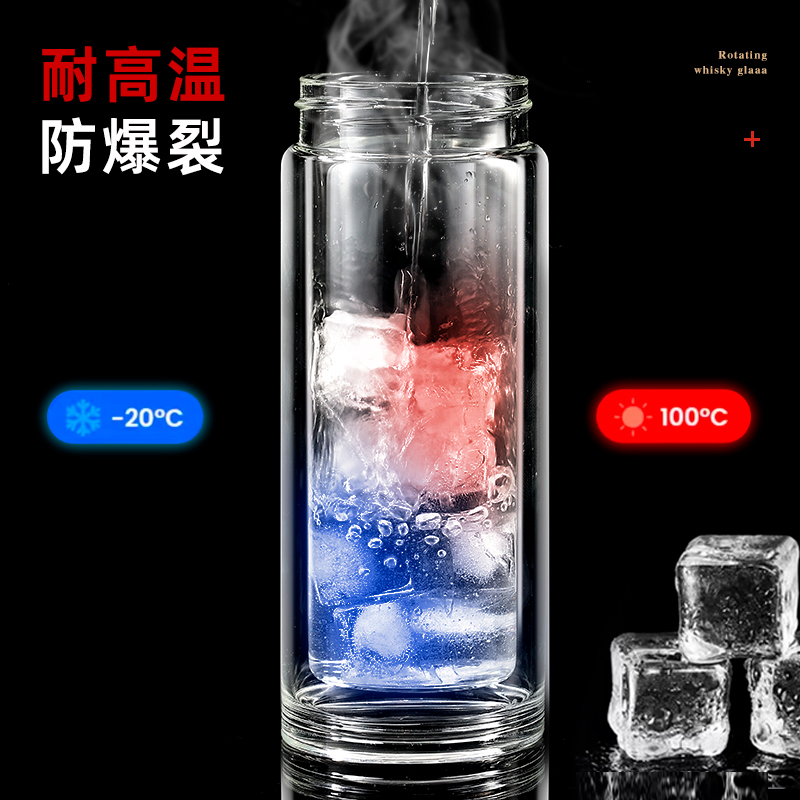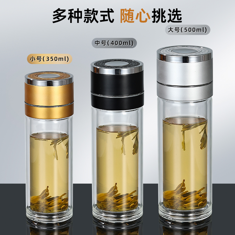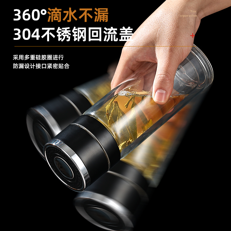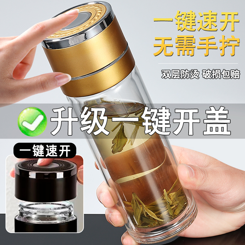 一键开盖车载双层玻璃杯男士办公室保温水杯茶杯速开启茶水分离杯