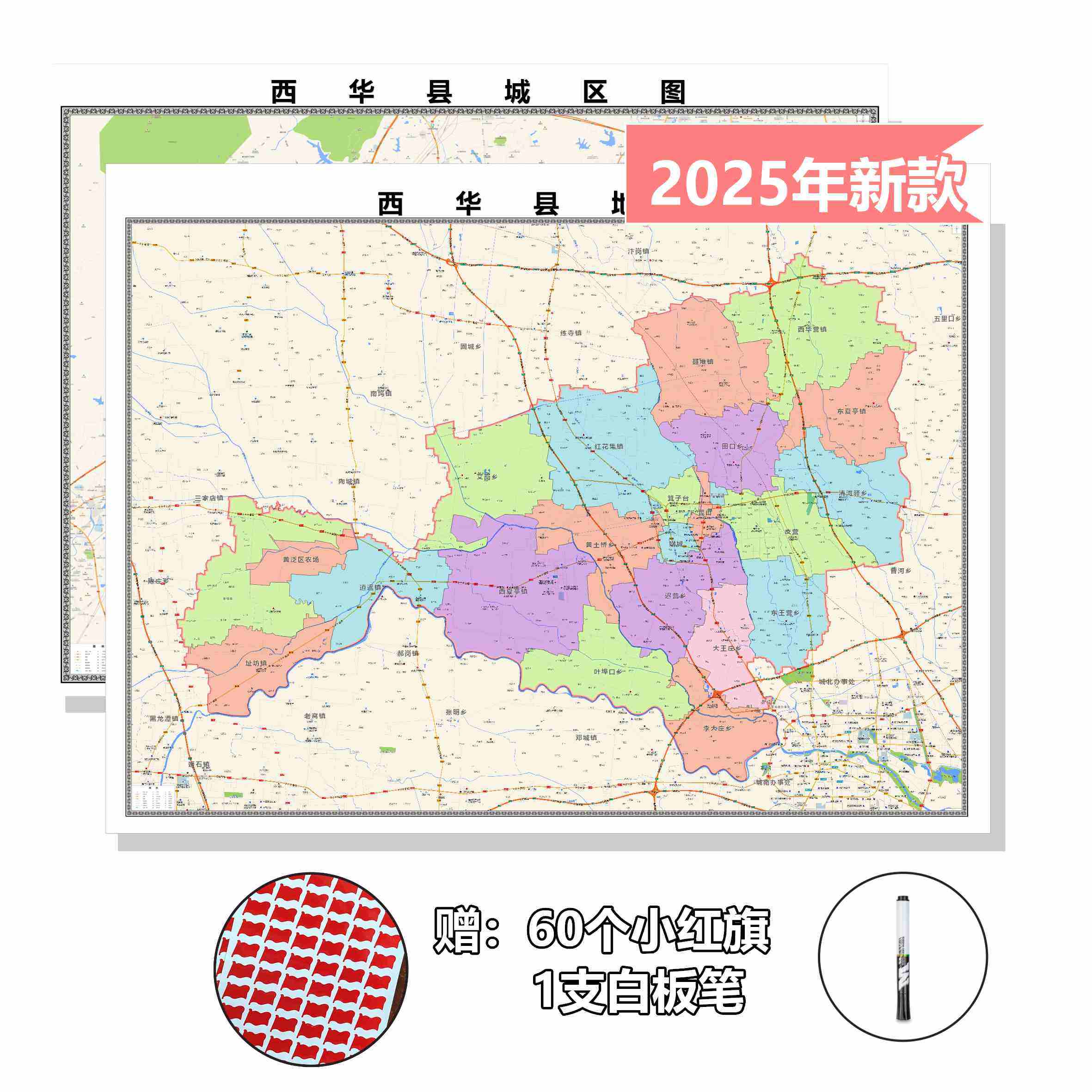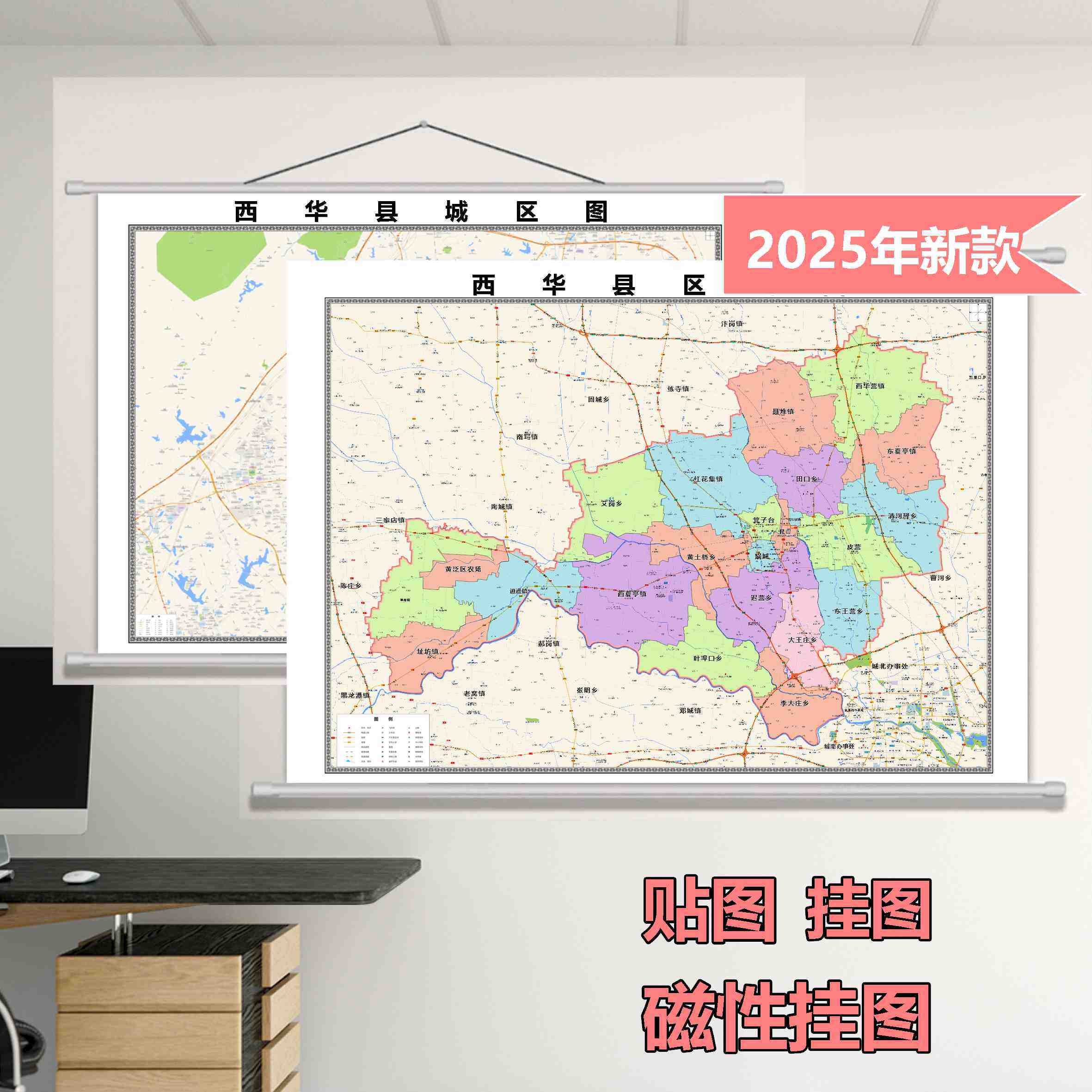 西华县定制地图商业城区县乡镇地区挂墙区域图覆膜防水办公室