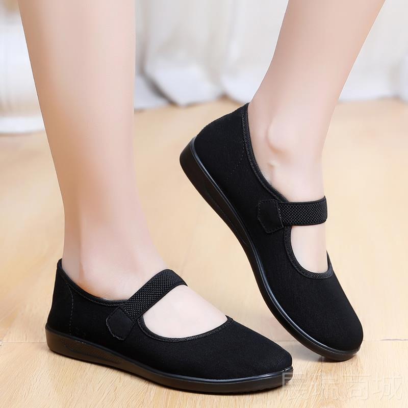 高档老老北京布鞋女单中年人适妈妈休闲鞋跳舞防滑舒软底黑色大鞋