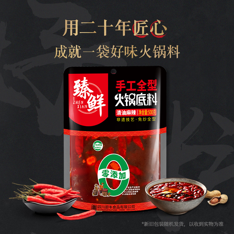 臻鲜四川清油火锅底料超辣500g手工麻辣烫串串香锅调料老成都特产