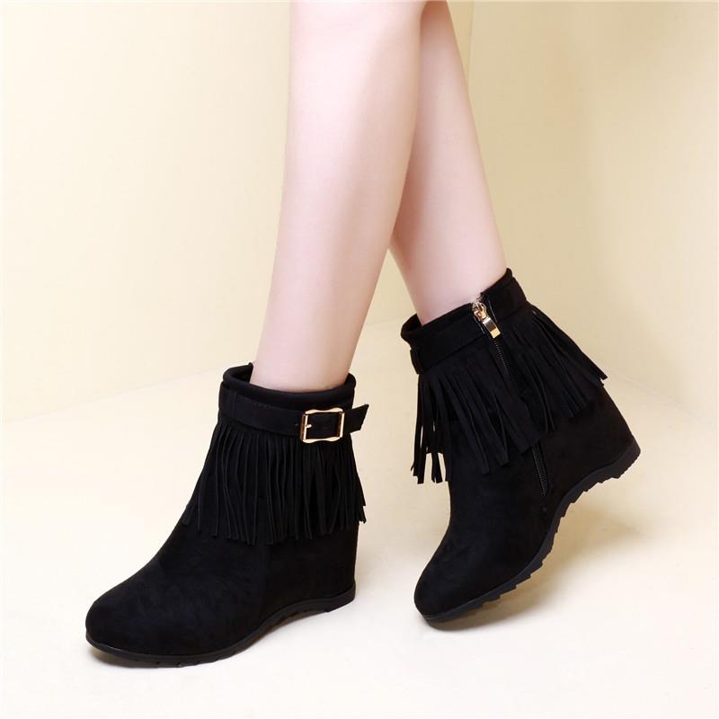 2025新款高跟短靴流苏女靴子短筒马丁靴内增高英伦风女式靴子皮鞋