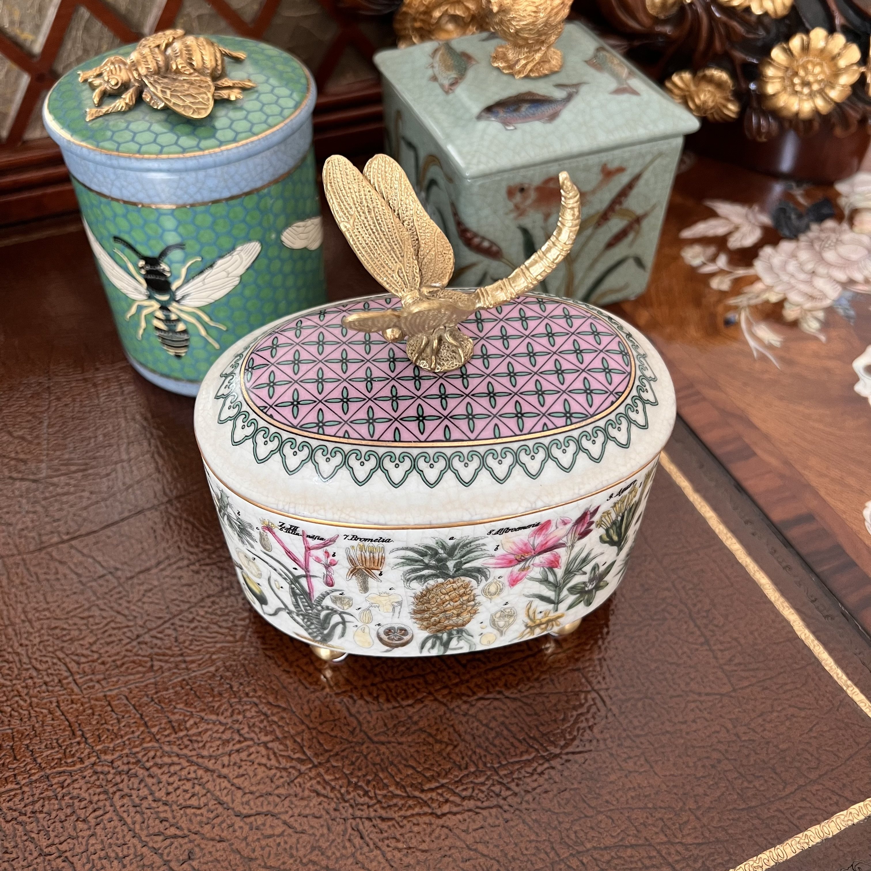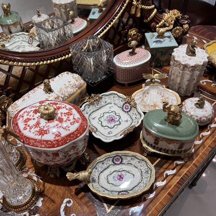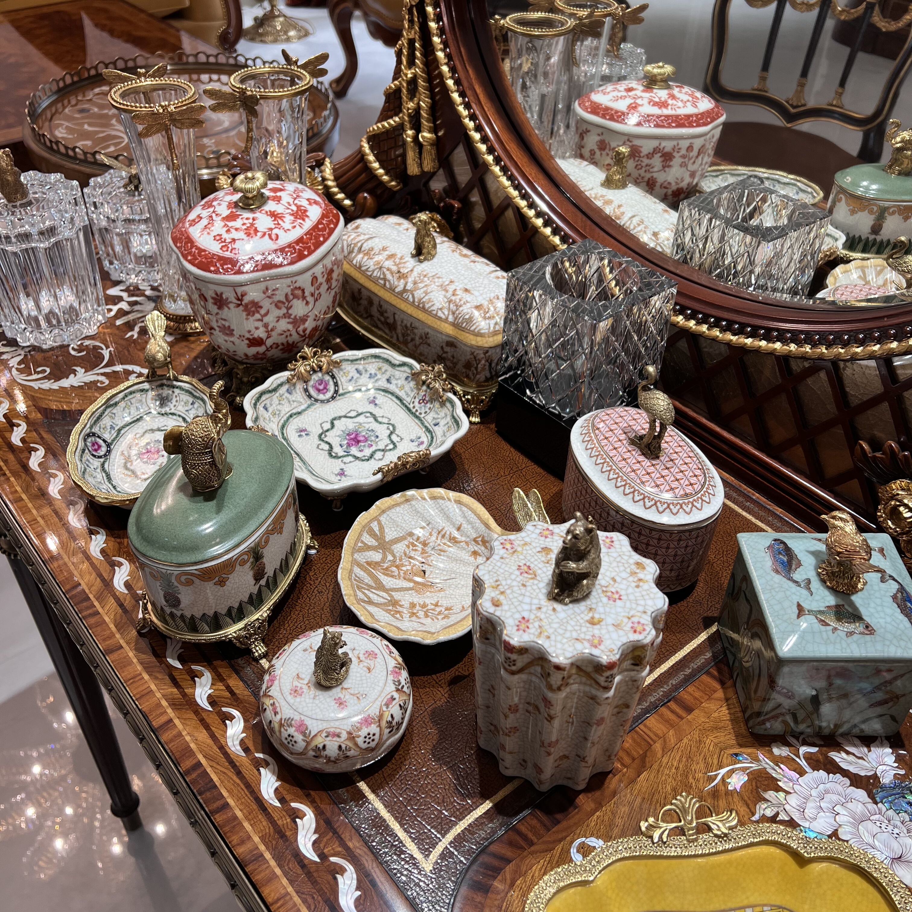 法式复古陶瓷配黄铜首饰盒收纳盒