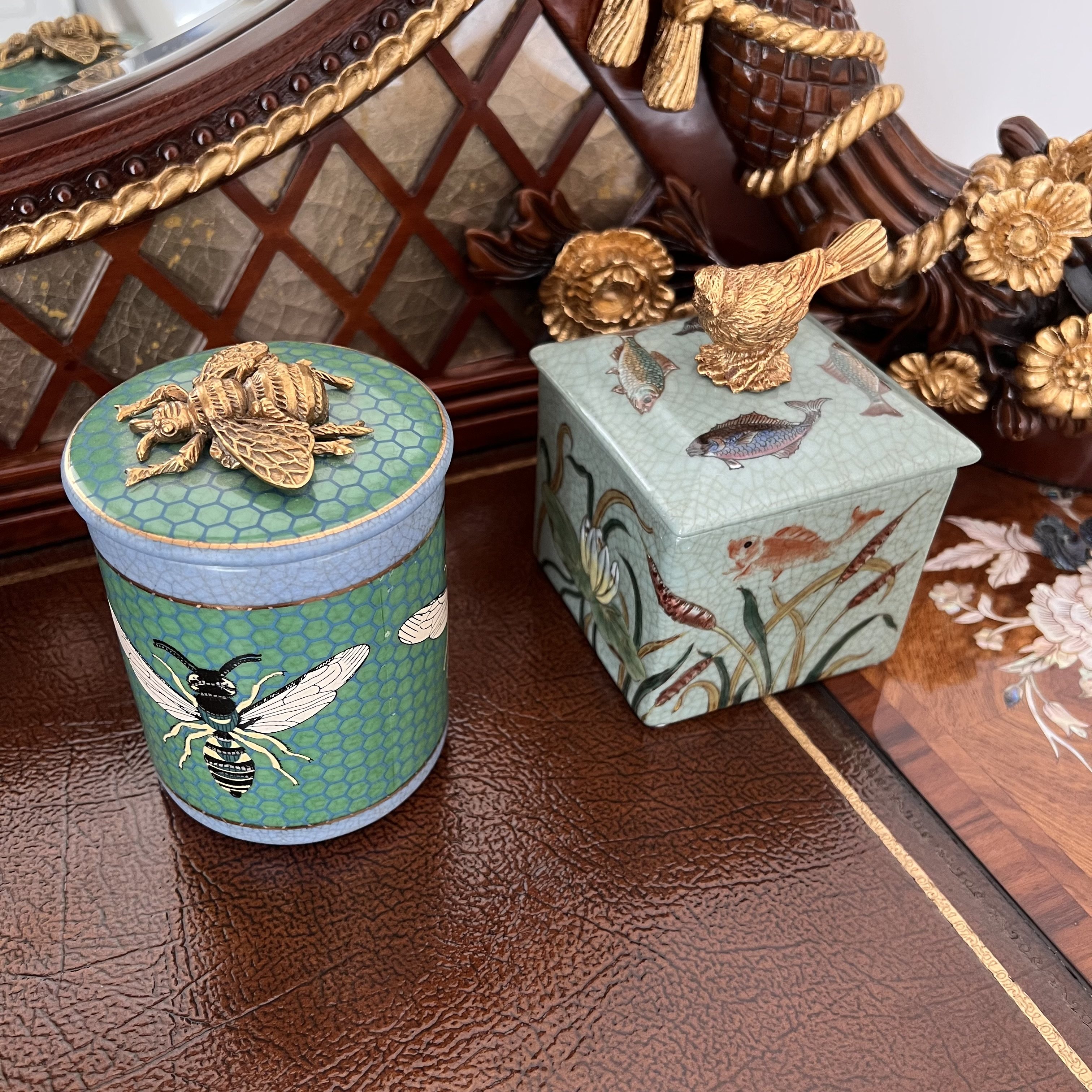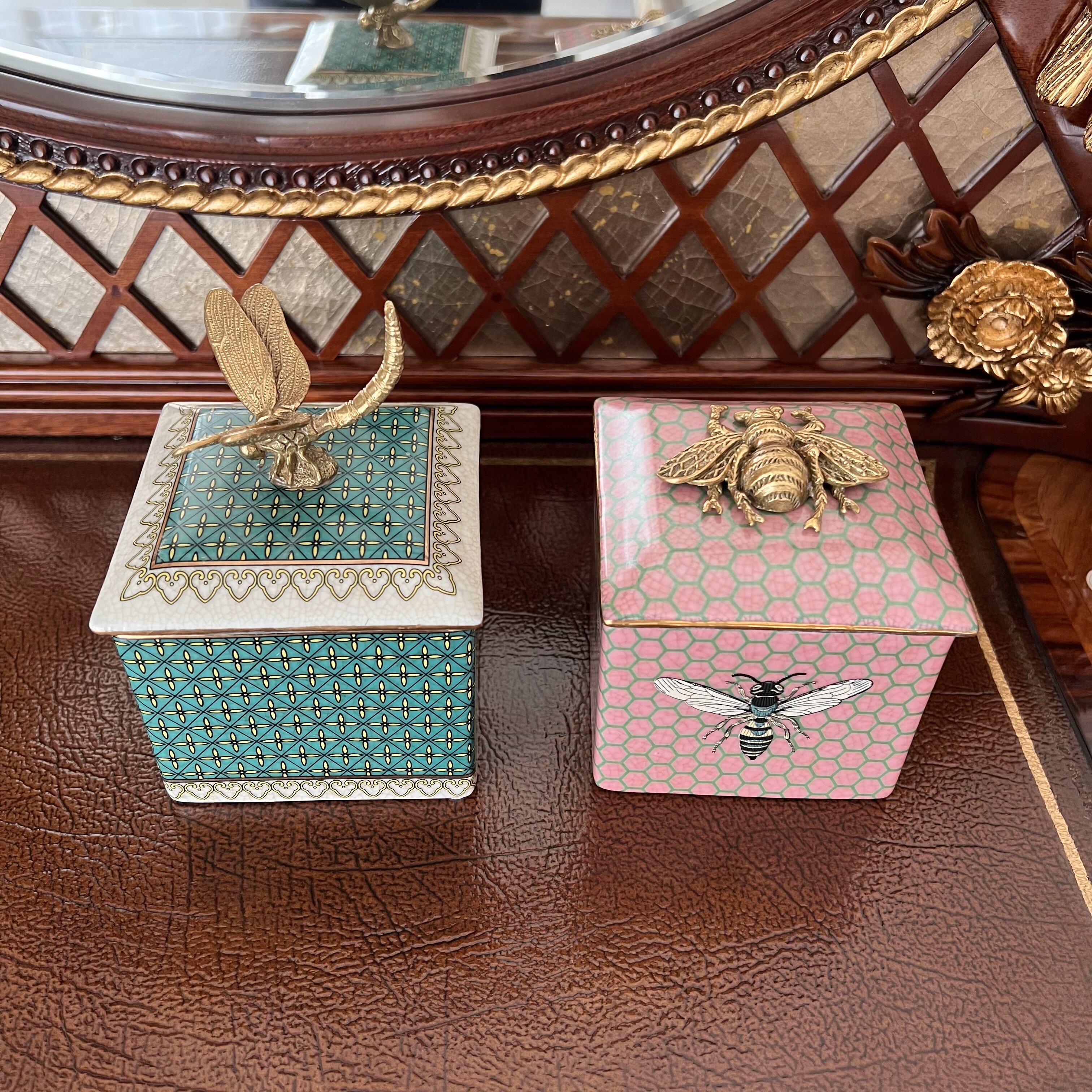法式古典收纳盒装饰品陶瓷配黄铜盖盒桌面小摆件梳妆台首饰盒复古