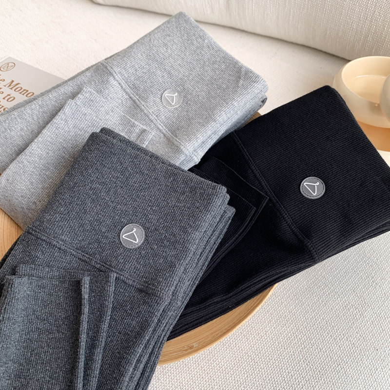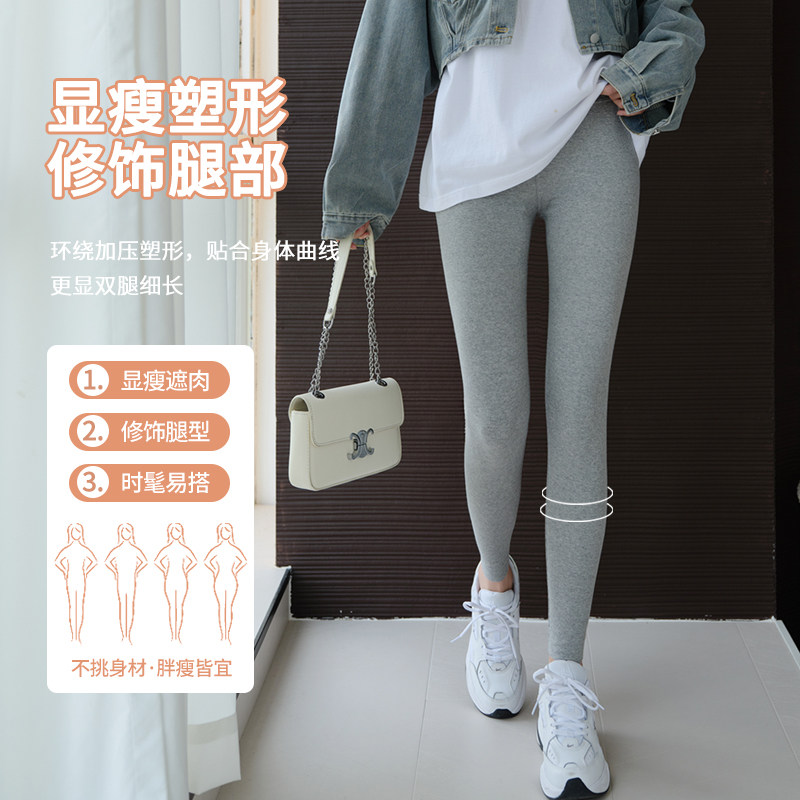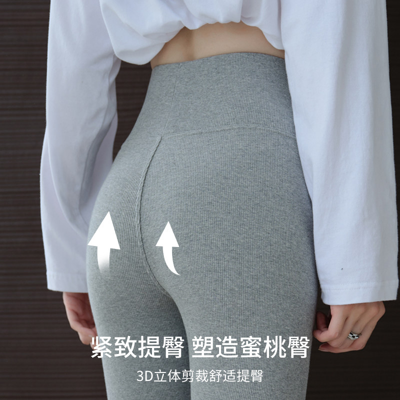 2025新款打底裤女外穿春秋薄款灰色高腰小脚秋裤弹力螺纹显瘦棉裤
