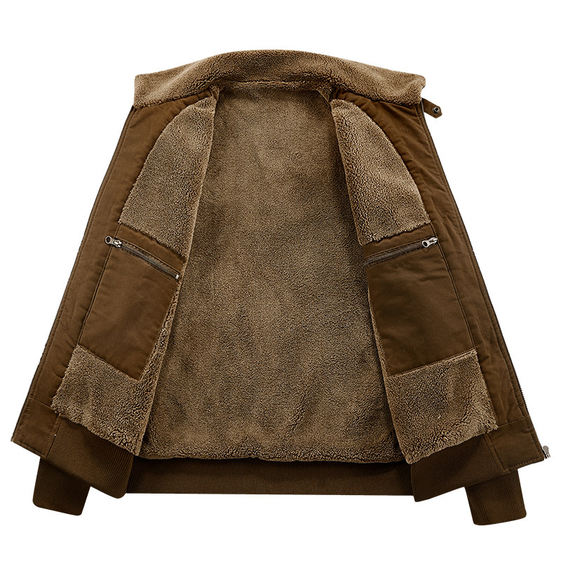 加绒保暖水洗棉夹克外套男士多口袋飞行服中年爸爸装加厚棉衣秋冬