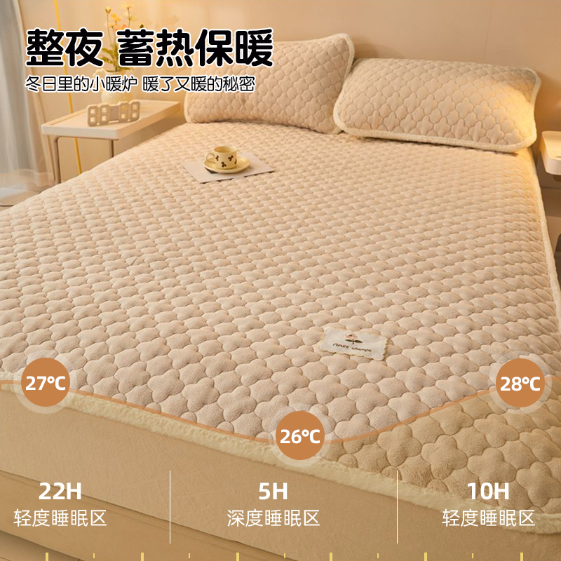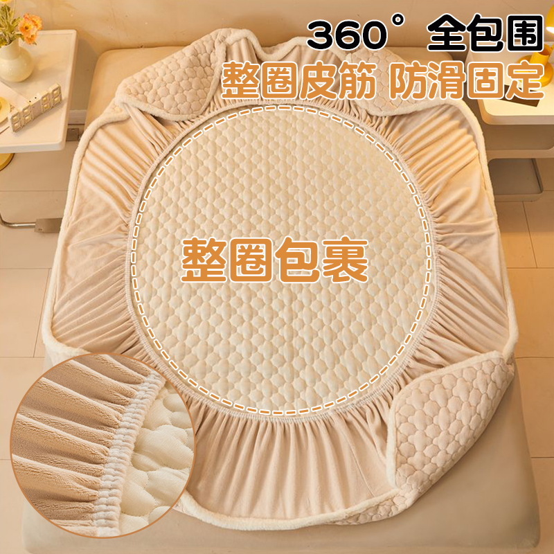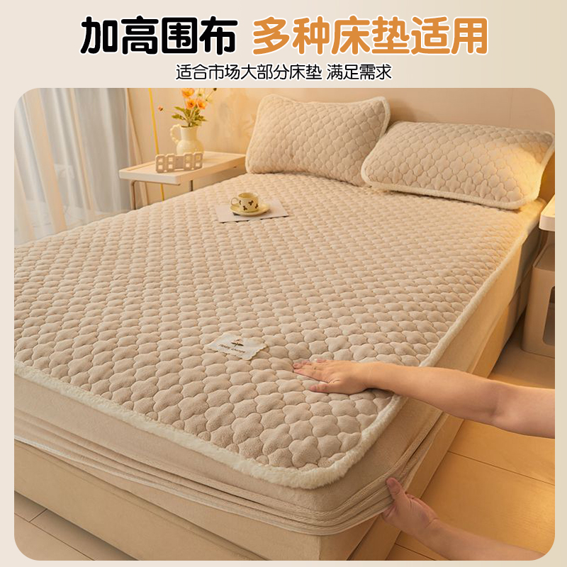 冬季加厚牛奶绒床笠三件套珊瑚绒床罩床套纯色保护套防滑固定床单