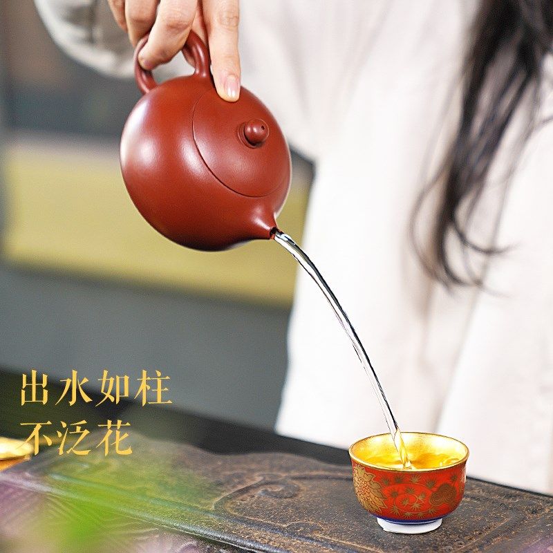 紫砂壶宜兴纯全手工名家球孔泡茶壶家用朱泥大红袍西施壶茶具套装