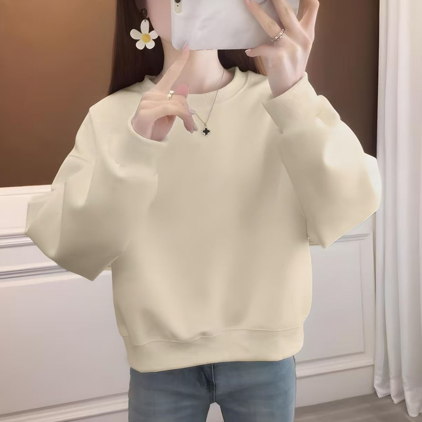 圆领白色短款保暖卫衣女宽松韩版秋冬加绒加厚小个子百搭纯色上衣