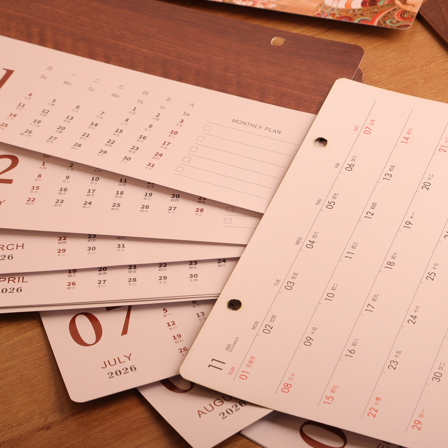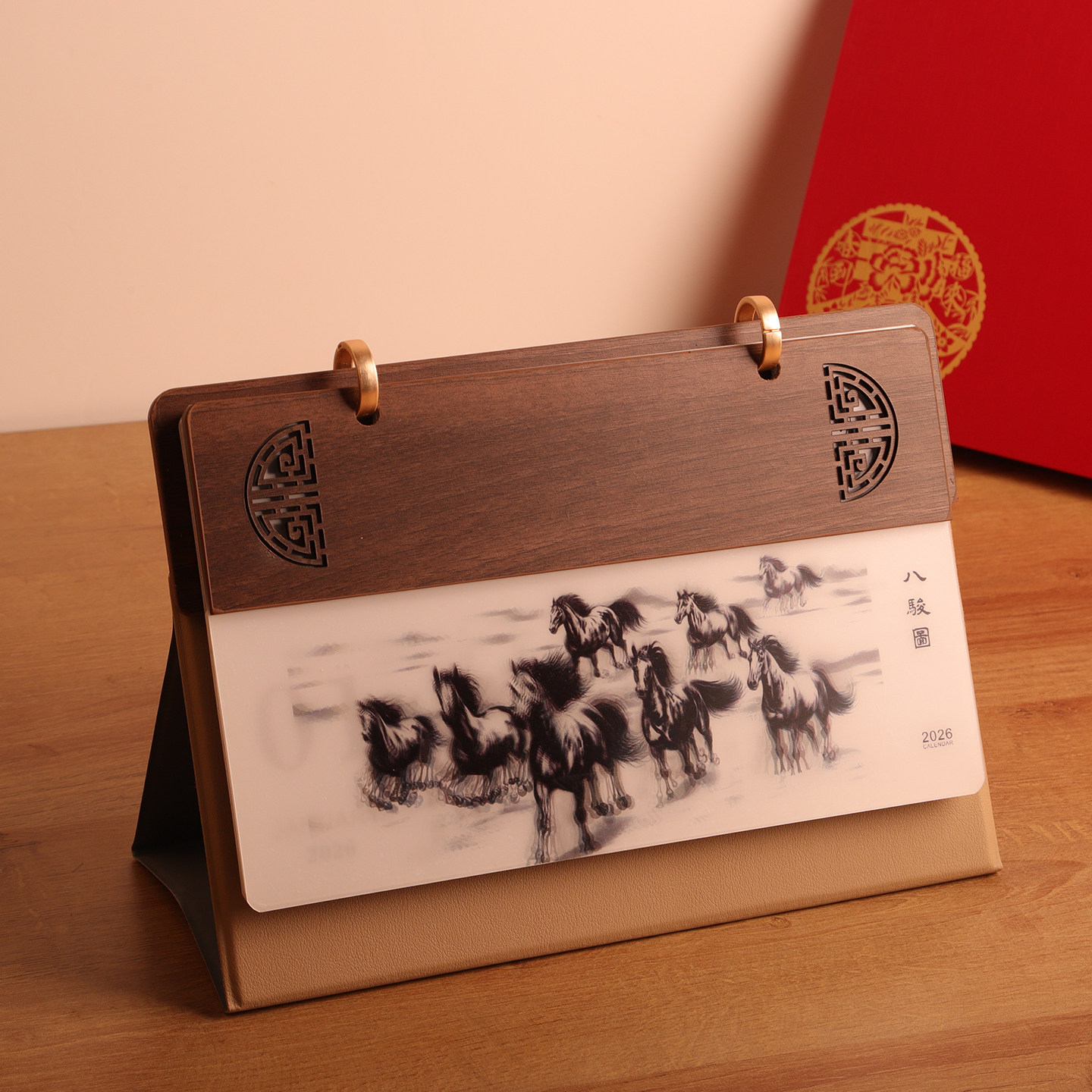 企业商务台历2026年皮木拼接高档公司广告印logo图文设计台历定制