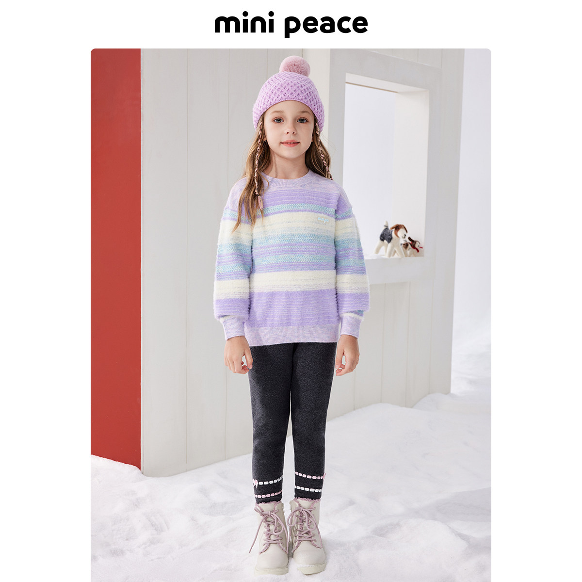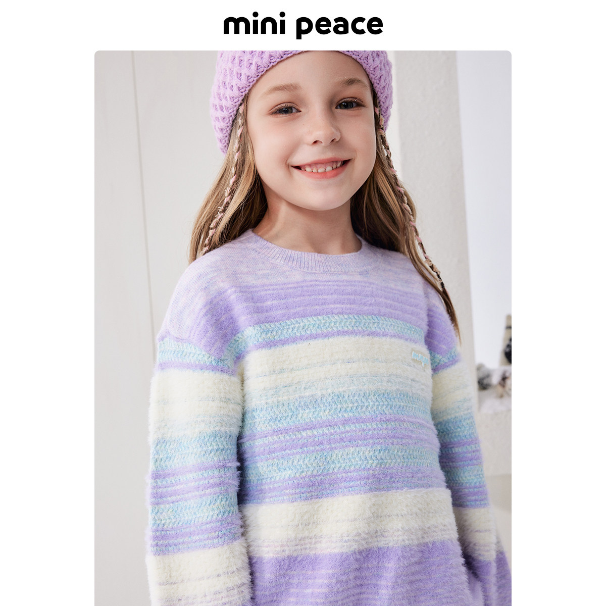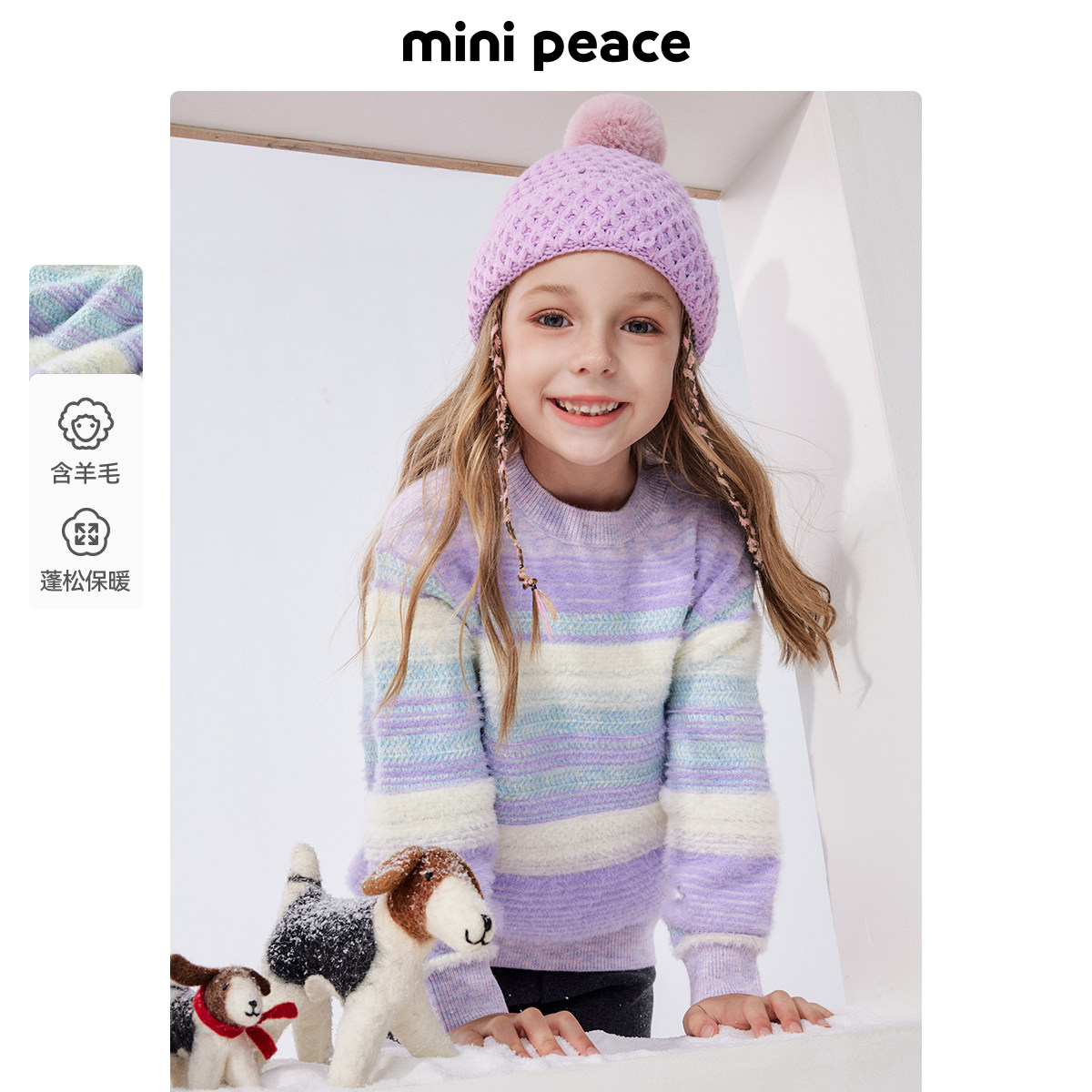 MINIPEACE太平鸟童装女童条纹毛衣儿童毛衫针织衫新款冬装潮洋气