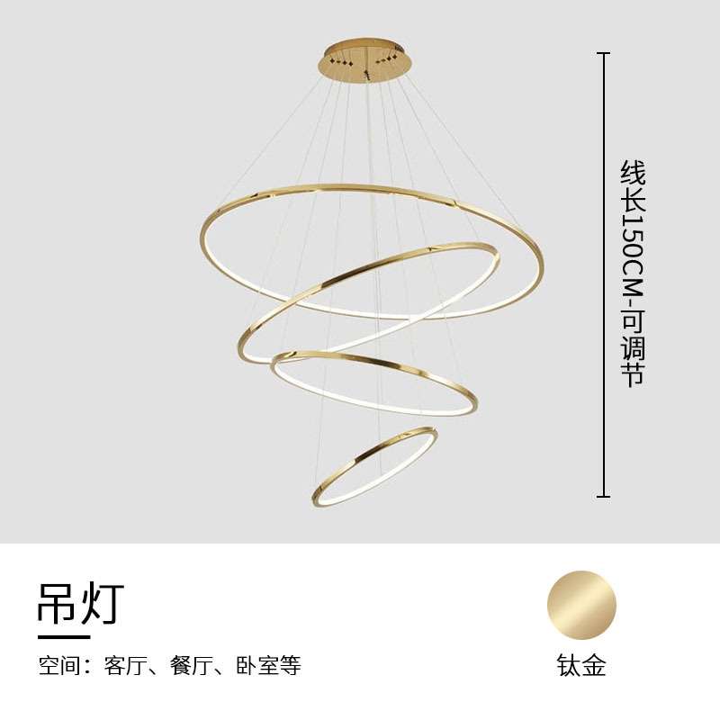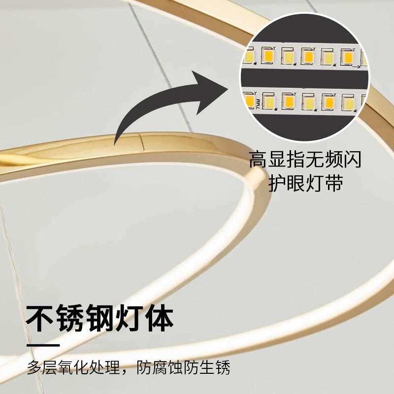 复式楼客厅大吊灯不锈钢别墅loft公寓跃层楼梯间圆环形灯轻奢风