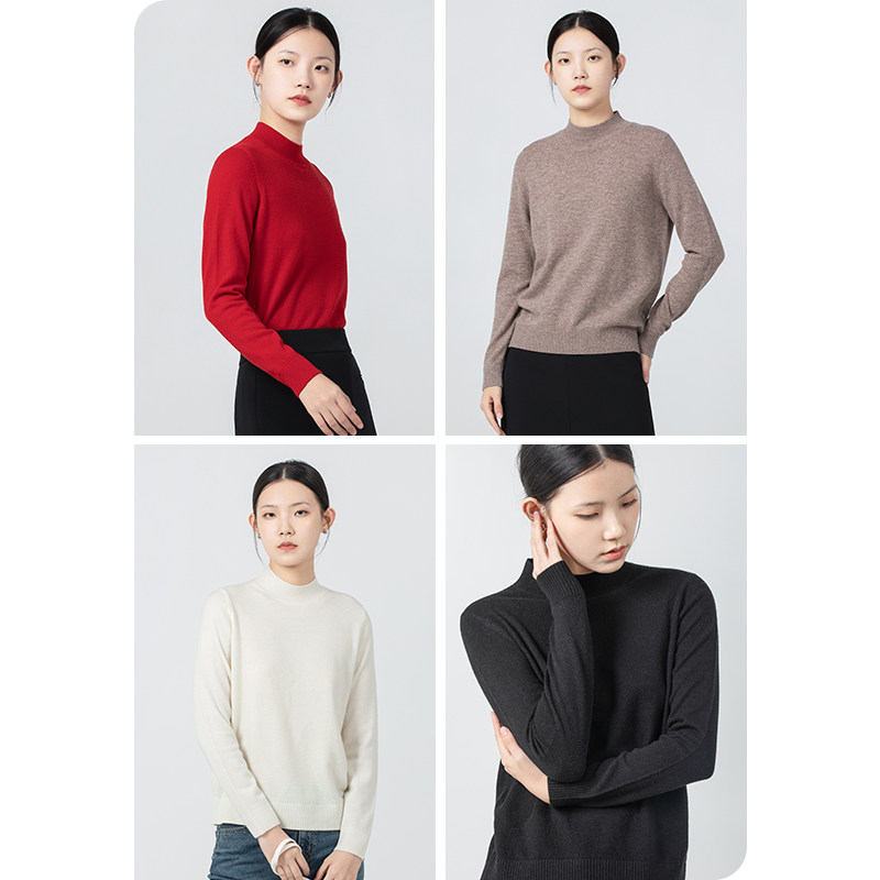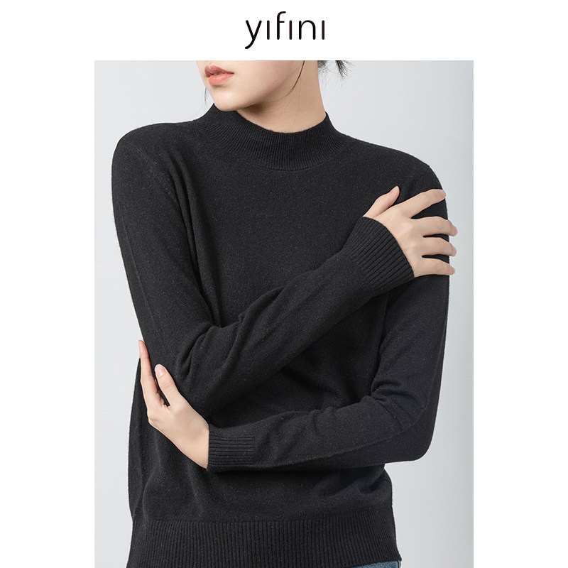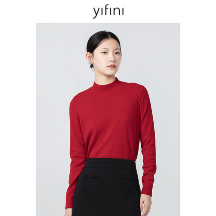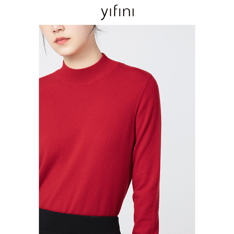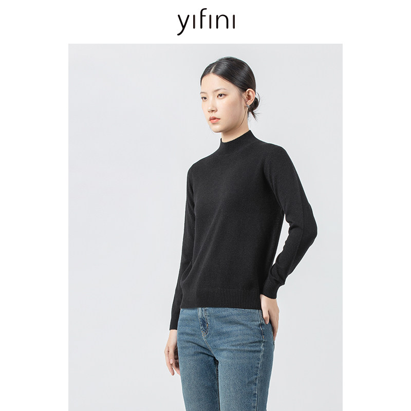Yifini/易菲100%绵羊毛多色打底羊毛衫女春秋新款保暖针织衫