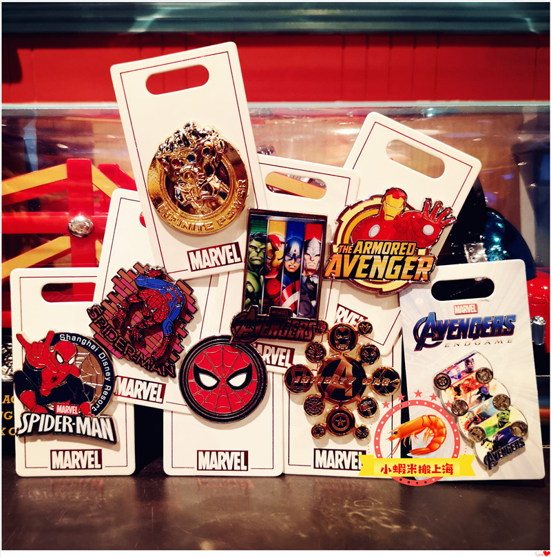 上海迪士尼国内代购漫威蜘蛛侠钢铁侠灭霸复仇者联盟美队盾冬徽章