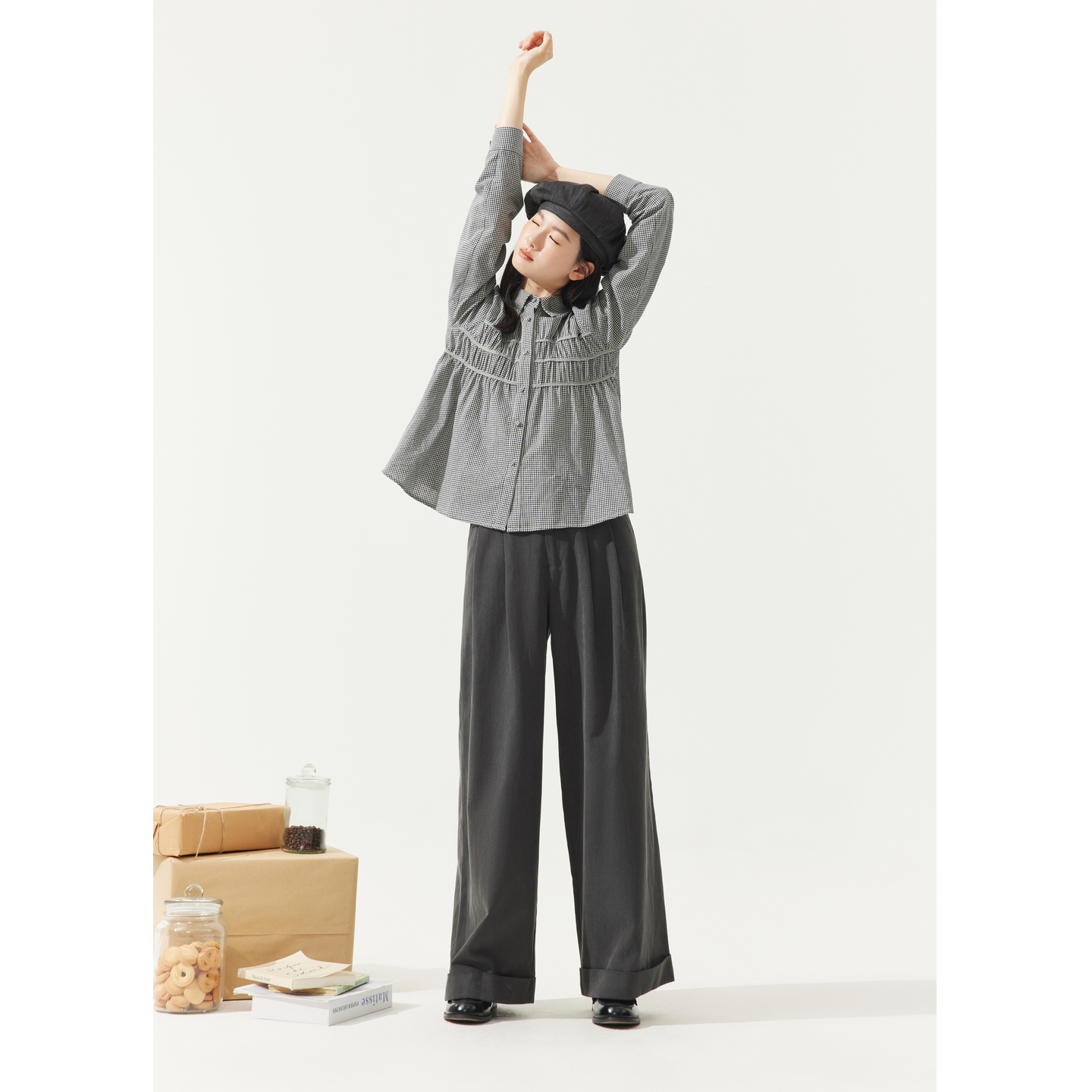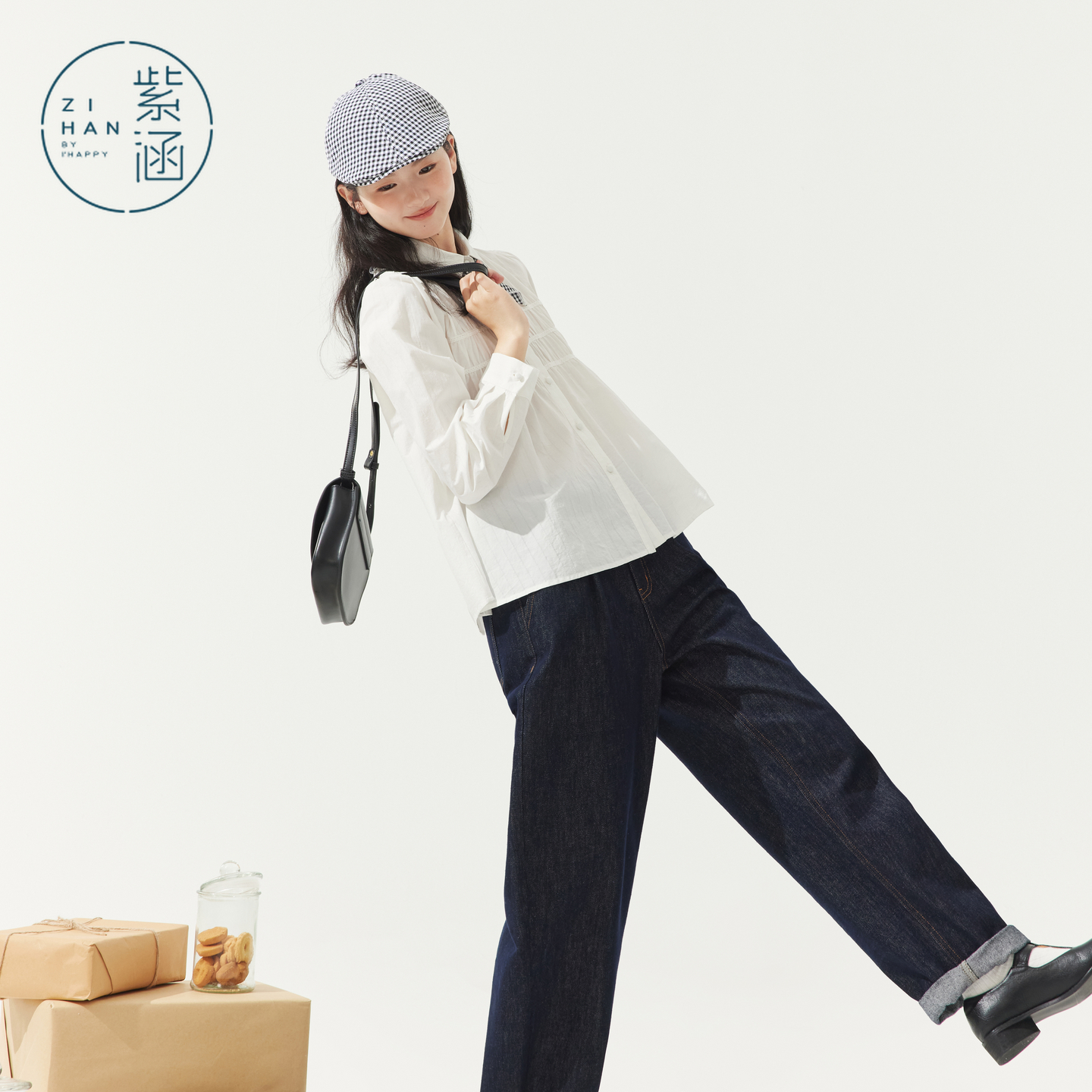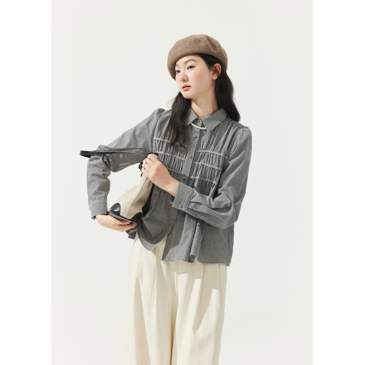 紫涵泡泡袖抽褶衬衫女2025秋季新款甜美日系宽松a字长袖纯棉衬衣