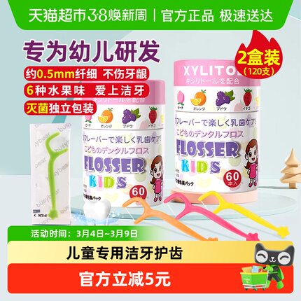 顺丰包邮儿童牙线棒60支*2盒单独立包装便携宝宝专用超细家庭装
