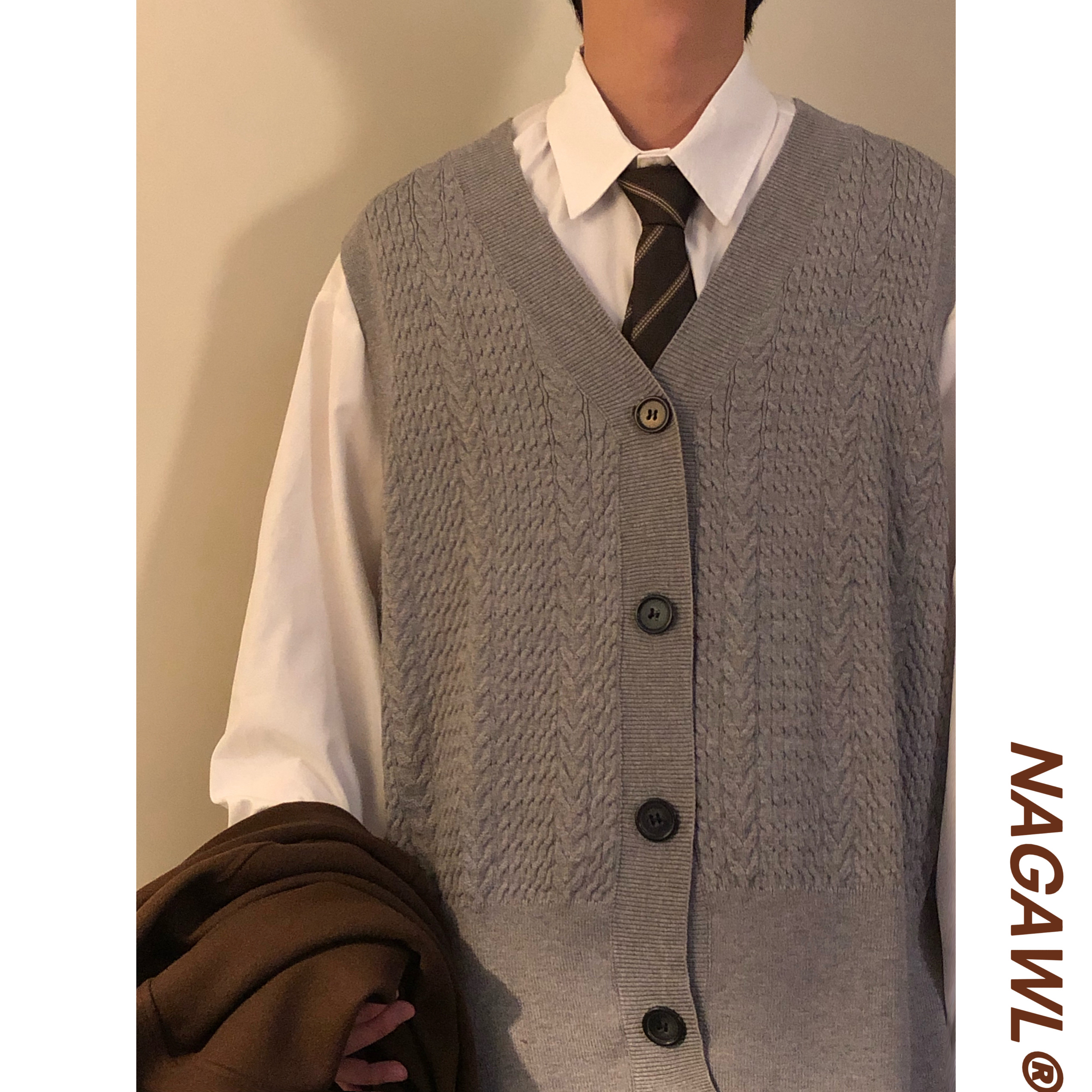 NAGAWL宽松日系复古cityboy潮流百搭黑色针织开衫背心毛衣马甲男