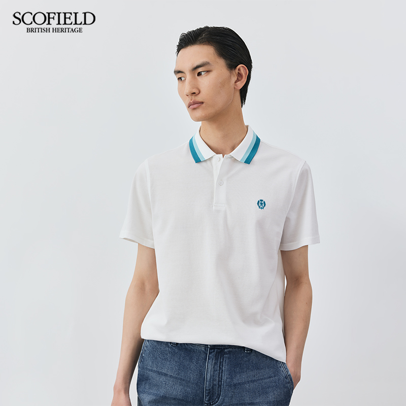 SCOFIELD商务休闲T恤夏季纯棉短袖上衣撞色条翻领POLO衫