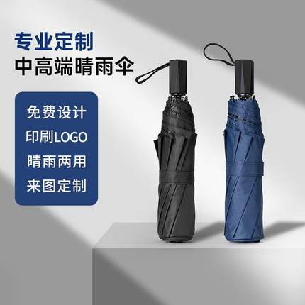 现货折叠雨伞纯色黑胶遮阳伞晴雨两用商务礼品伞印logo广告伞定制