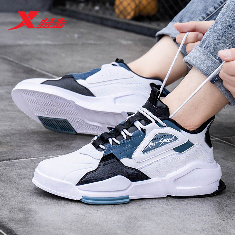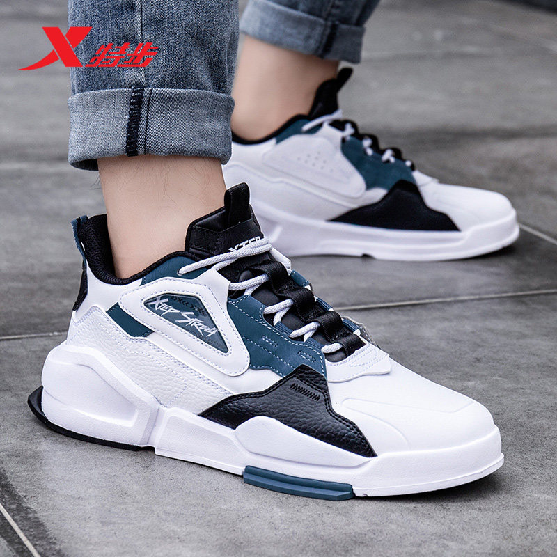 特步男鞋板鞋运动鞋皮面保暖