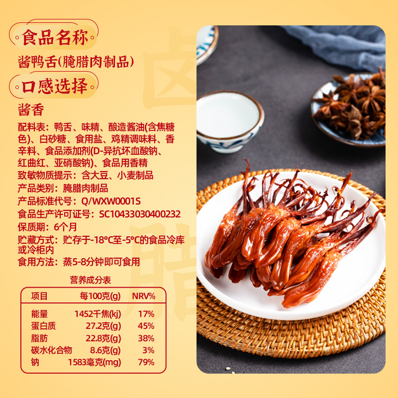 修文食品生鸭舌温州特产酱鸭舌腊鸭舌生鲜半成品需要蒸称重500g