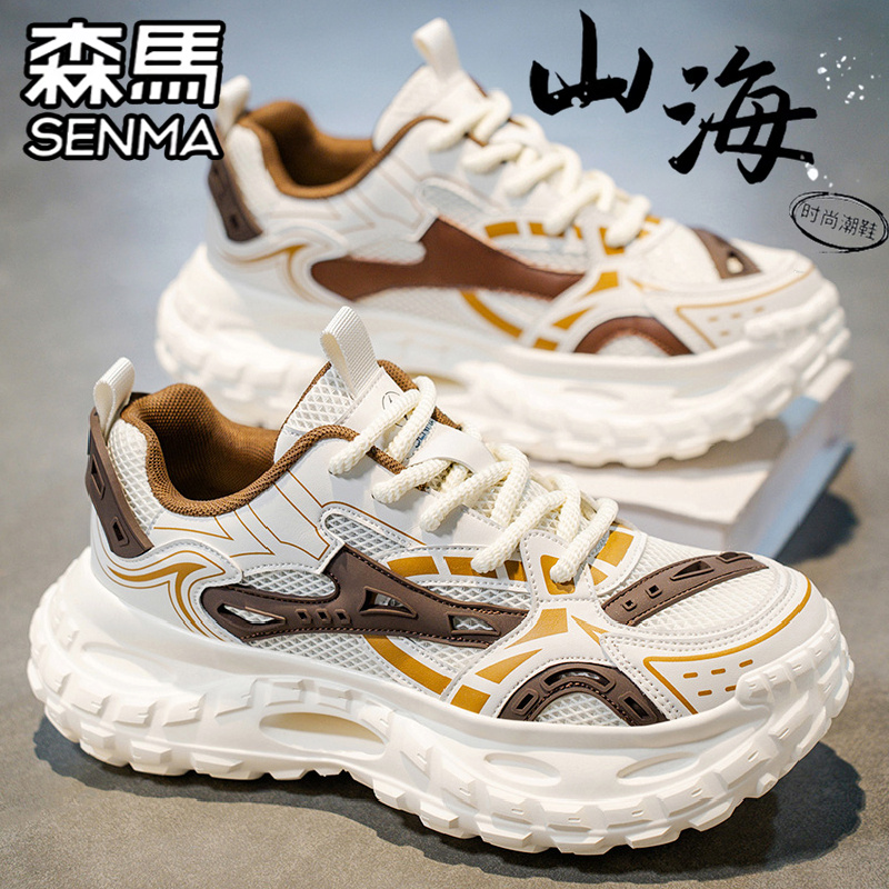 森马男鞋秋季透气网面运动休闲跑步轮胎厚底增高爆款百搭老爹潮鞋