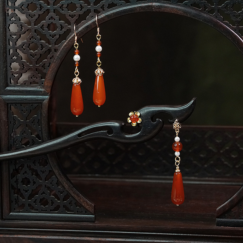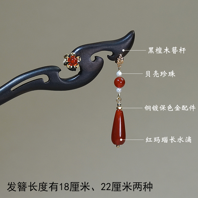 芳菲发簪子古风宫廷流苏红玛瑙黑檀木簪汉服头饰手工旗袍盘发日常