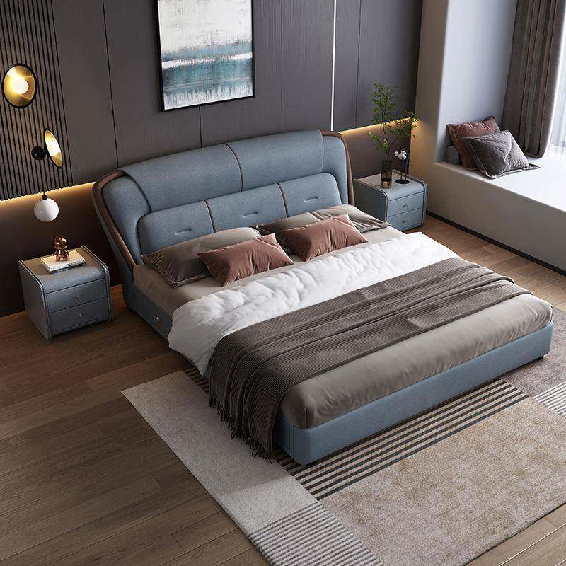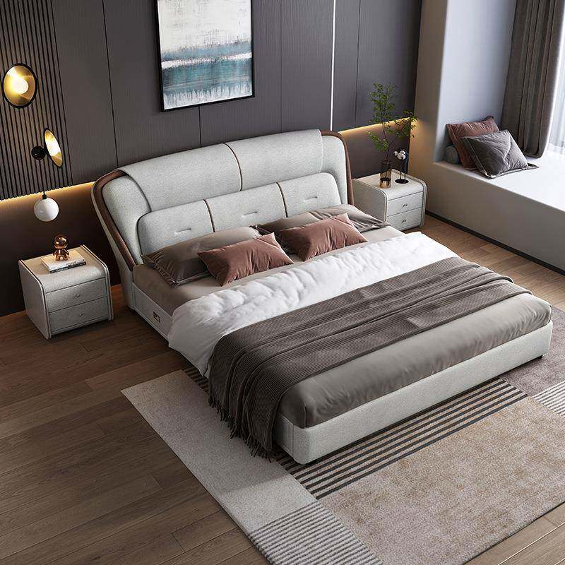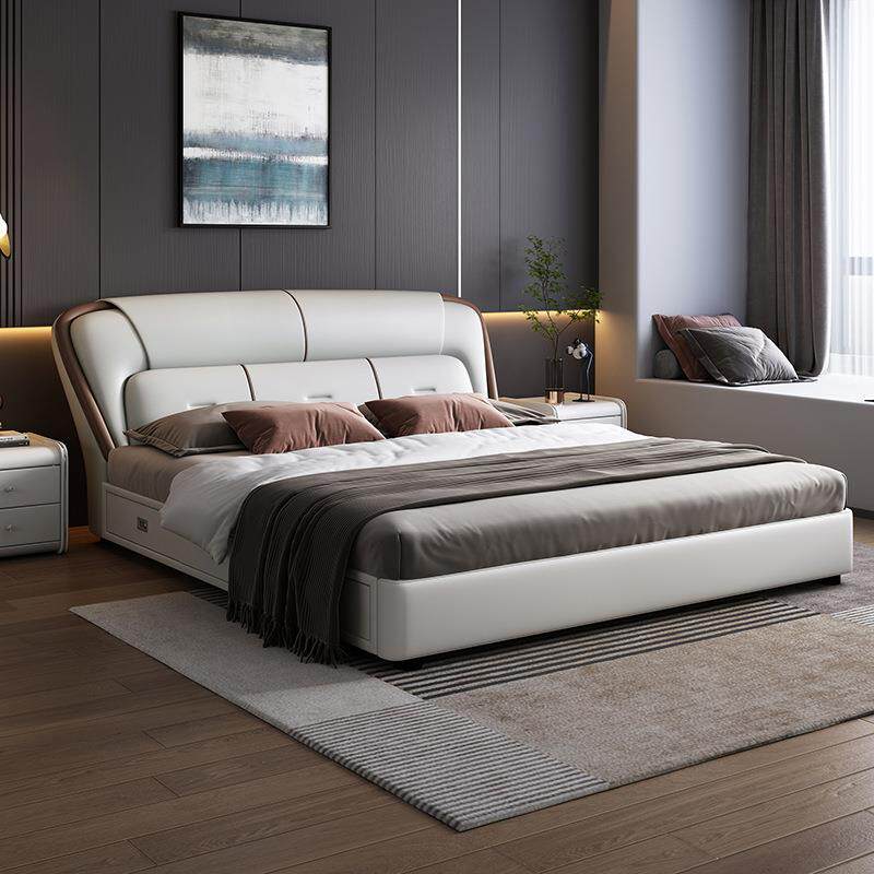 ft皮床现代简约实木床轻奢1.8米双人床意式主卧婚床1.5米储物
