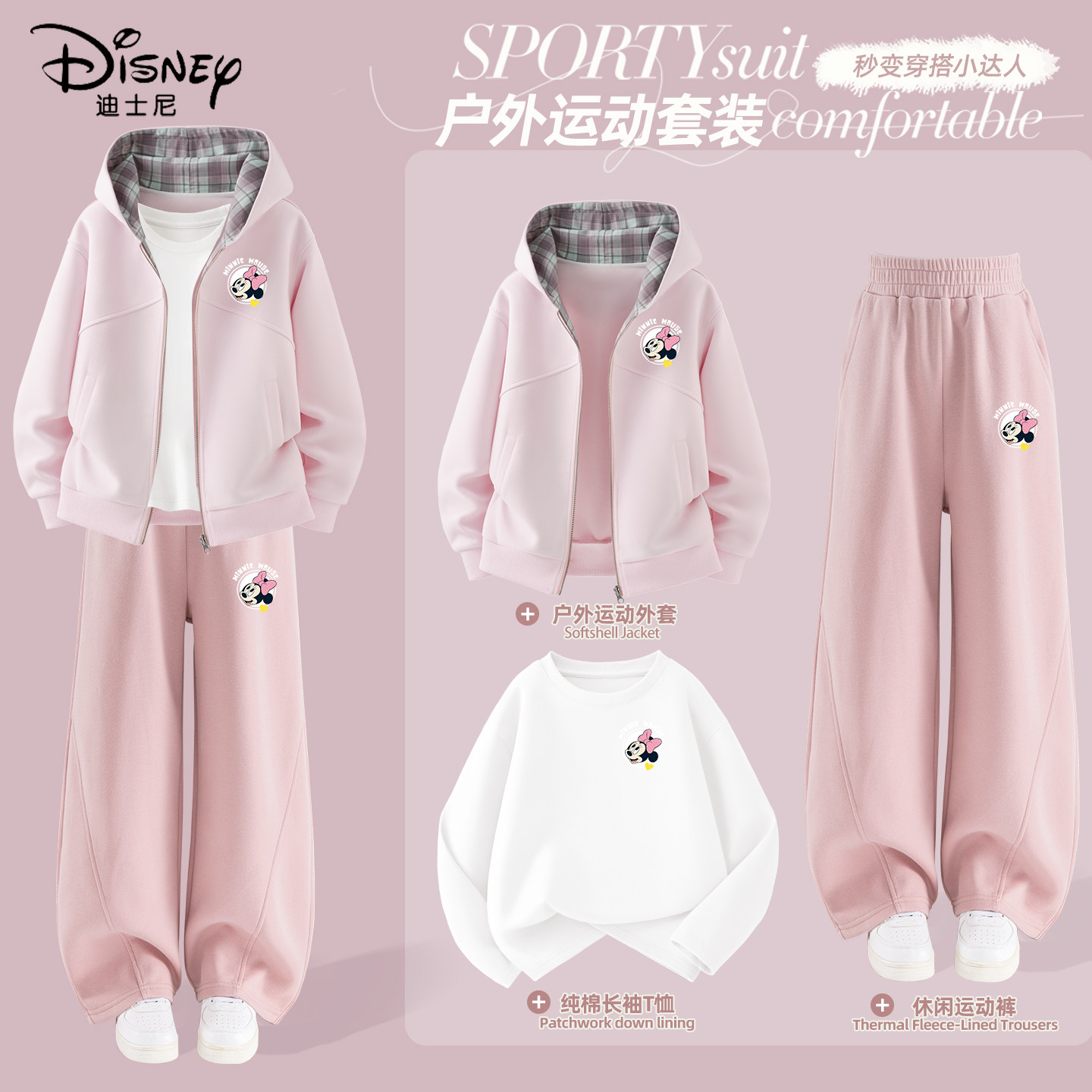迪士尼女童春装套装2026新款春季穿搭一整套运动休闲外套儿童衣服