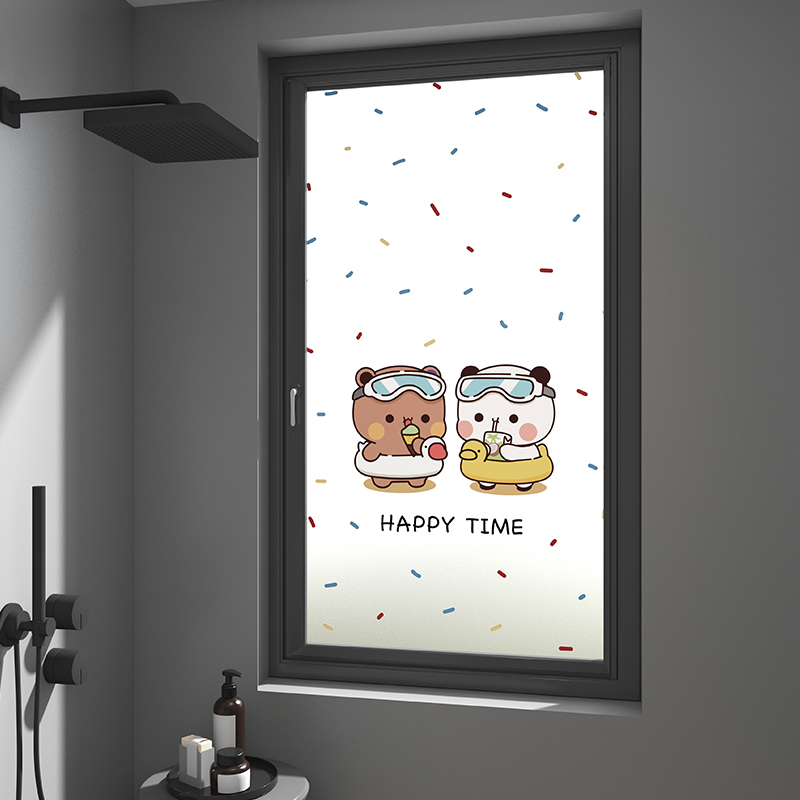 拉布布玻璃窗防窥贴膜卡通卫生间浴室窗户贴透光不透人免胶静电贴